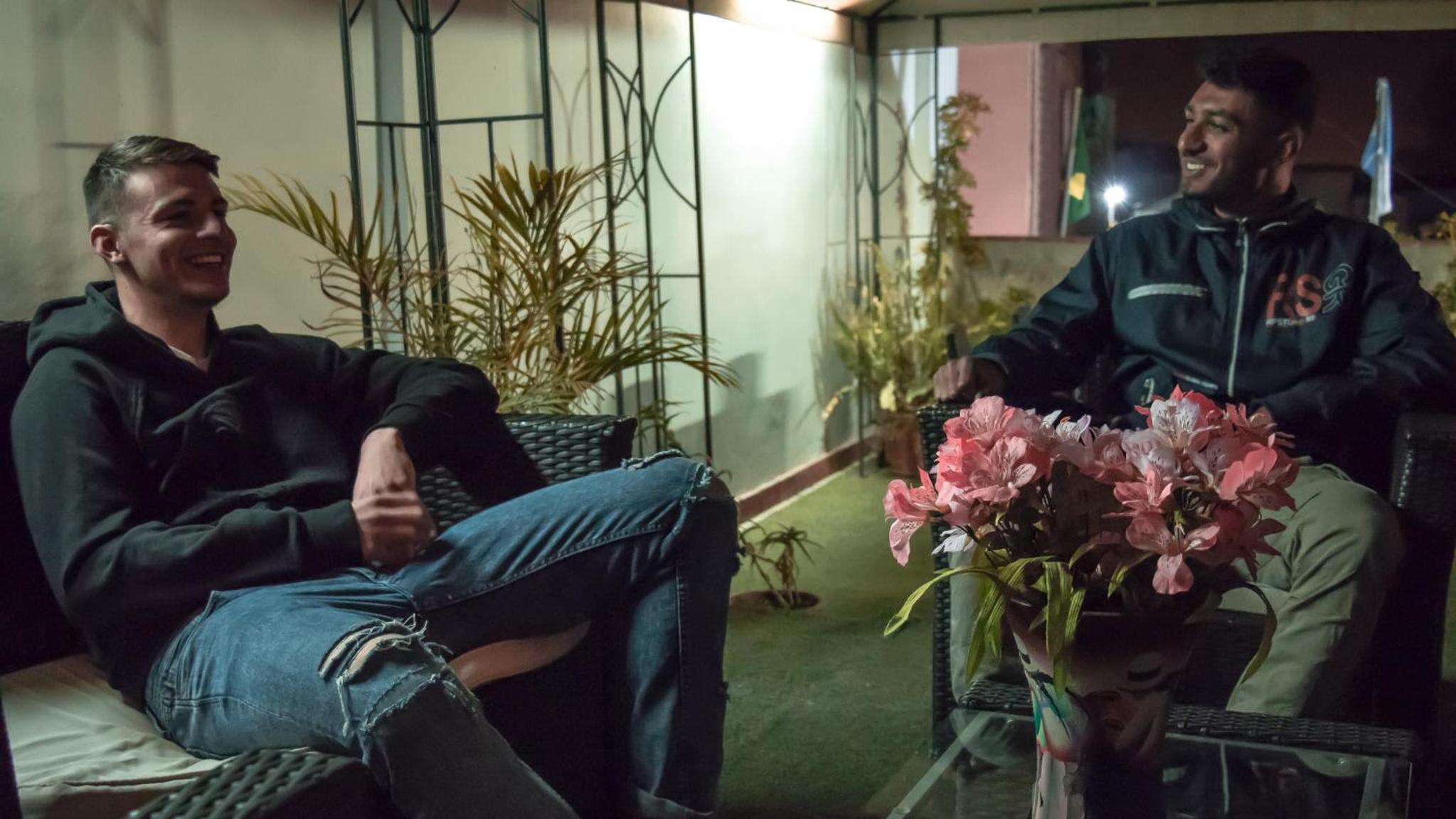 You have to ring the doorbell every time you come back , which was fine most of the times but one evening we came back around midnight and the receptionist was asleep , we could see her through the window . We stood outside in the cold for about 20 mins .