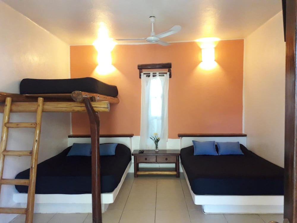I really enjoyed the fact that the beach front room was only a few steps to the eating area and really nice beach bar. the grounds are nice rustic lots of bamboo used in construction. It is only a short walk to small village with fun shopping and dining. Local artists sell handmade jewelry .