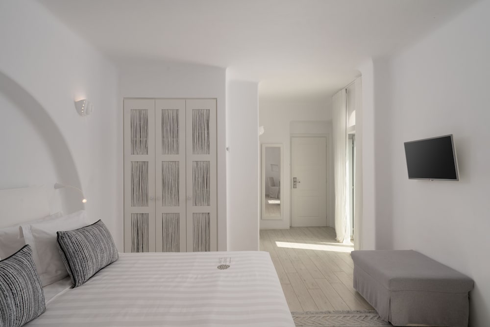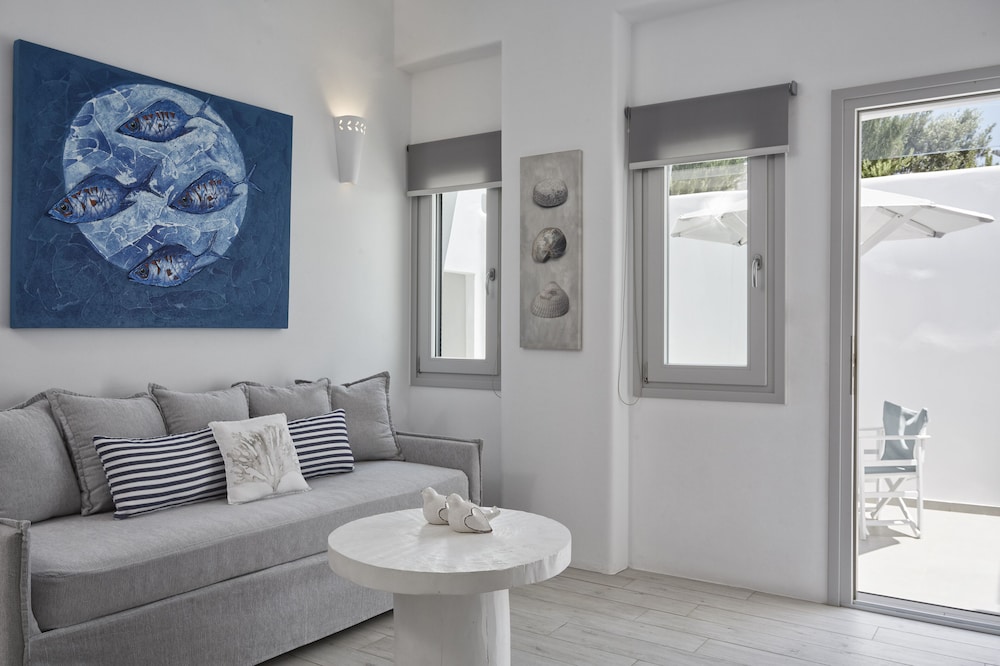 Boutique hotel located in a nice area of Santa Maria, close to a beach and short drive to Noussa. Staff was very friendly and they offered daily breakfast. Room was spacious with strong WiFi and AC. Free parking. I would definitely stay here again.