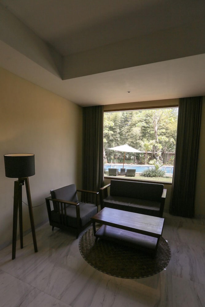 The hotel is about 20 minutes from the city center next to a green valley. It opened in early 2016 and is the "sister" of Ubud Hotels & Villas which is nearby. The place is arranged nicely, great pool and beautiful garden. The rooms are spacious. The staff is engaged and helped us with some good recommendations/bookings for tours and a spa.