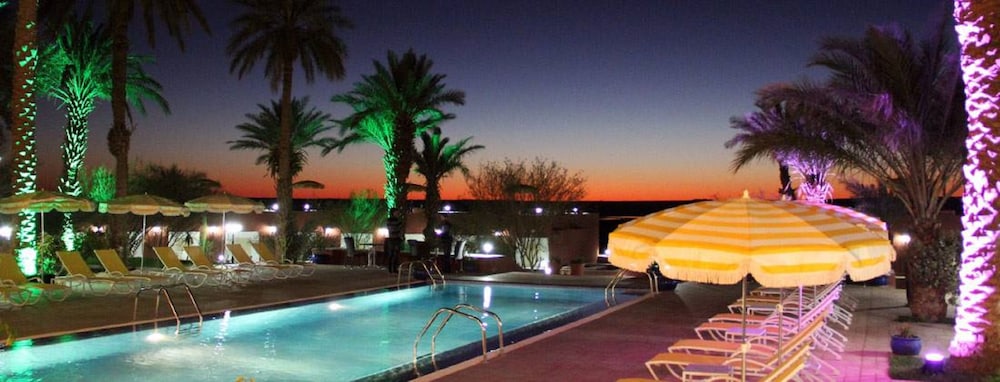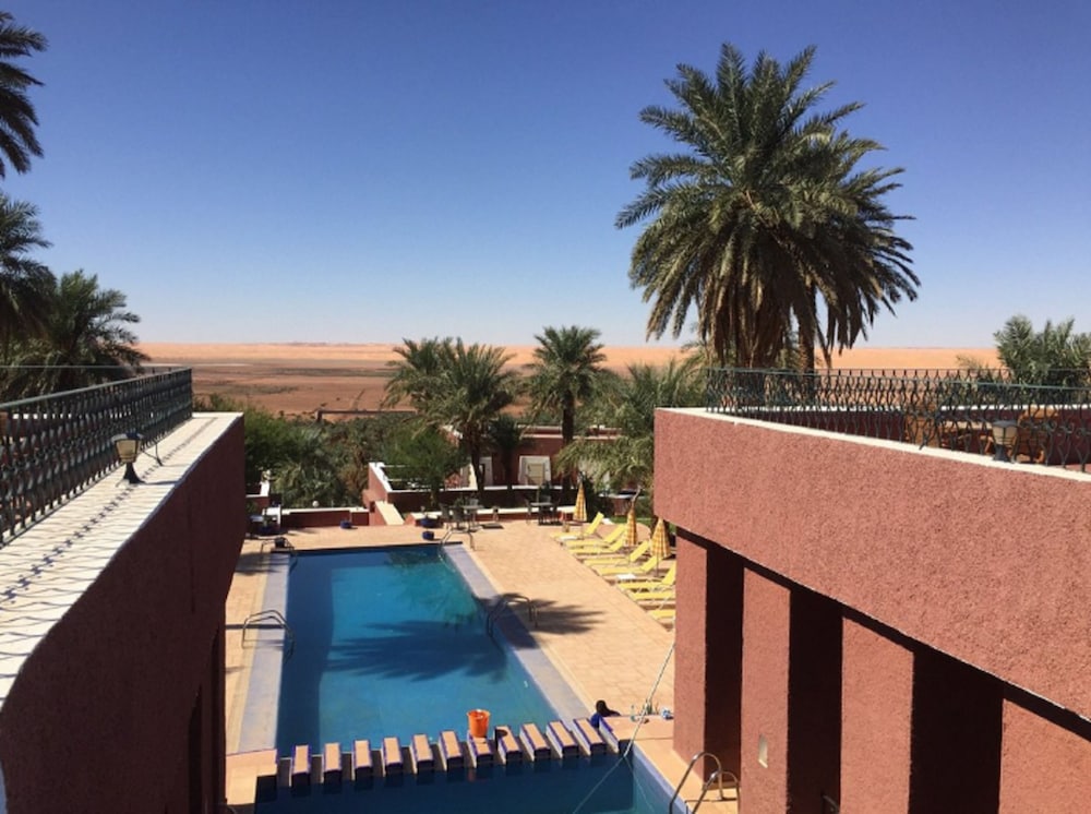 Timimoun and the hotel were both more basic than I had expected from the initial research, from reading guide books and from the reviews here. Once you realise this, there is no doubt this hotel makes for the most pleasant accommodation and dining in this part of the desert. Beautiful desert views from rooms and the restaurant. Nice pools. Mind you that if you (like us) arrive after 14:30 (or return from a day trip after 14:30), there is nothing to eat anywhere. Even the bar didnt stock olives, nuts or chips or anything. Then you have to wait for dinner at 19:30. They also ran out of beer the last couple of days, which is more understandable in a muslim country in a remote location (but could probably be planned for). We liked our two nights and two days, but had to adapt to circumstances more than expected. We had some problems figuring out how to book a desert day trip, but in the end it all worked out. There was a mix up with the Expedia reservation that consumed some time and had us worried. We were told to pay directly at the hotel (which would have been less than half the price) although the money had been debited my account at the time of booking. Some intermediary might have created this hick-up.