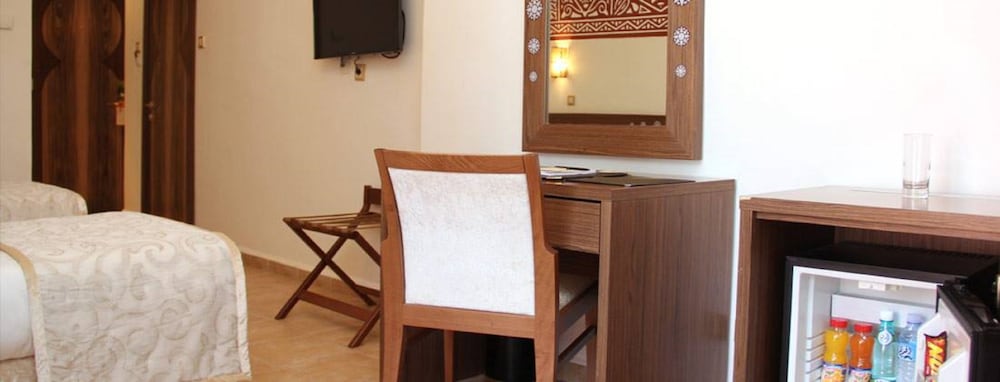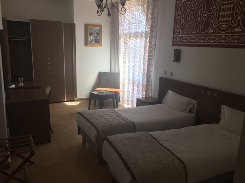 Nous avons passé un excellent séjour dans cet hôtel. Je n'approuve pas les avis négatifs que j'ai pu lire... Oui certaines choses sont perfectibles mais le personnel est attentionné, rapide à solutionner les problèmes. La chambre était grande, climatisée, avec TV. L'hôtel a le wifi. En même temps il y a tellement de choses à faire à Timimoun ! Demandez à l'accueil, ils ont des contacts pour des excursions à bon tarif. Le gros point de cet hôtel : quelle vue sur le désert depuis ces nombreuses terrasses! Et la piscine : propre, eau cristalline, nettoyée tous les jours. Franchement, rapport qualité-prix imbattable. Attention à prendre de l'argent liquide, il est difficile de retirer à Timimoun, l'établissement ne prenant pas la CB lors de notre séjour.