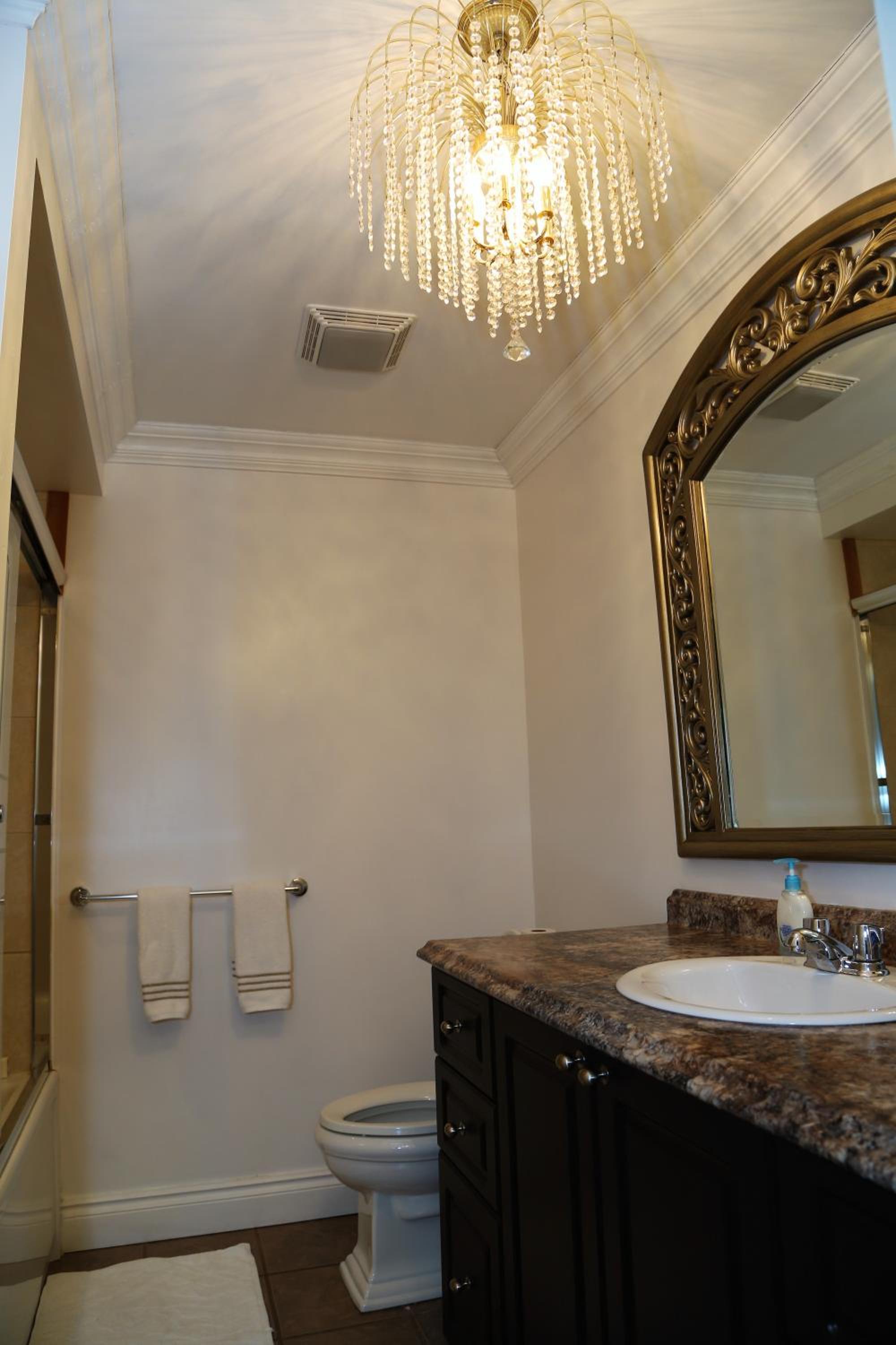 The bathroom smelled like pee and the door handles and light switches were all a little dirty.