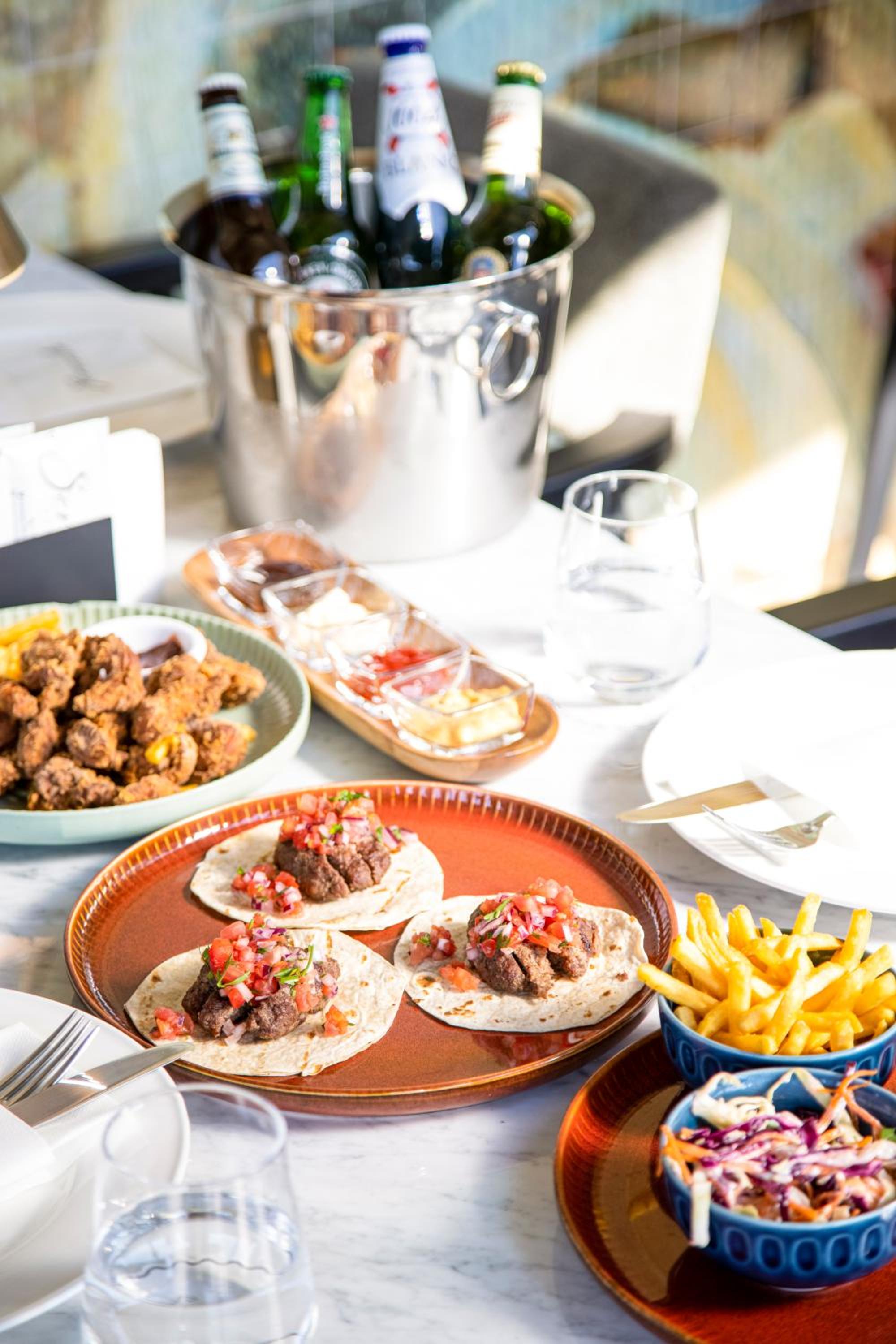 Tesla supercharger, great food, awesome staff