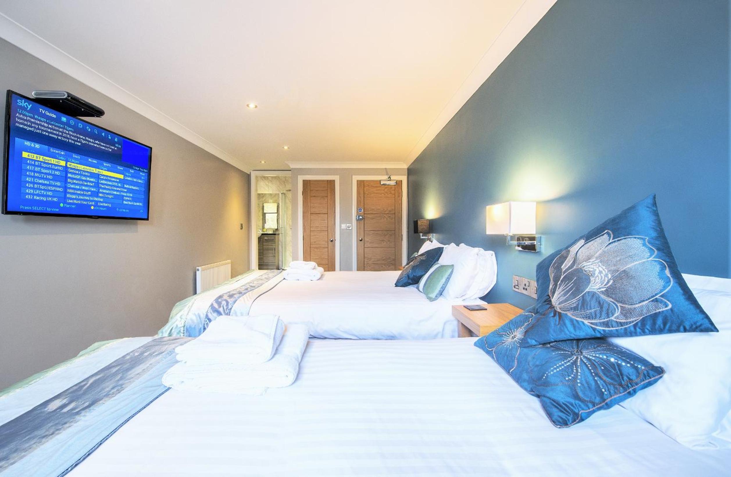 The room was very spacious,clean and fresh smelling. Bathroom modern and again spacious. Beds were comfortable. The location was excelent for town & beach but very quiet and peaceful.Parking was available outside the rooms at a small cost or across road at the hotel for free. Wifi was very good as the choice of sky channels on a good sized tv.The breakfast was good quality ingrediants and cooked perfectly which was served in the hotel. ( Lovely hotel) All staff we came across were very friendly and helpful. Smooth check-in.