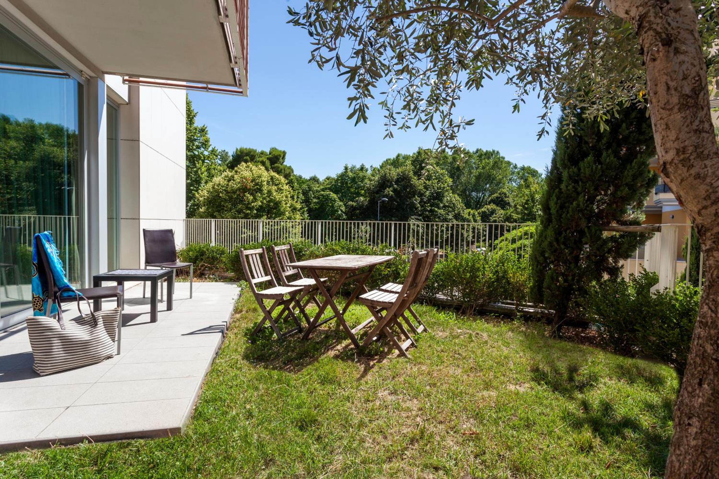 The chairs on the terrace become quite uncomfortable when sitting for a longer time. They’re wooden and narrow, and start pressing into your thighs. However, this can be solved with a towel or by bringing a more comfortable chair from the kitchen.
