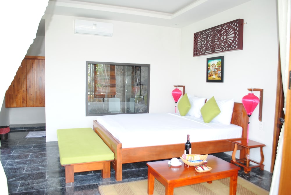 Very nice hotel in the middle of a vegetable field. Lovely views with calm and relaxing surroundings. It is a bit far off from the old town, but free bicycles makes it easy to get around. The resort is also not to far from An Bang beach. If you are too lazy, or it is too hot, you also have the option to rent a motorbike for a charge. Rooms are very comfortable and recommend staying on the second floor where the view is great. Good selection of breakfast and the hosts are supernice! I will never forget my stay with them. Go and you will not be disappointed.