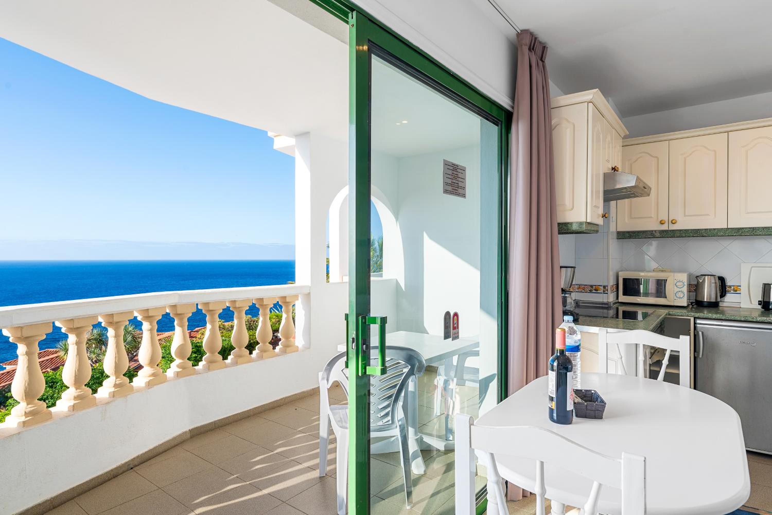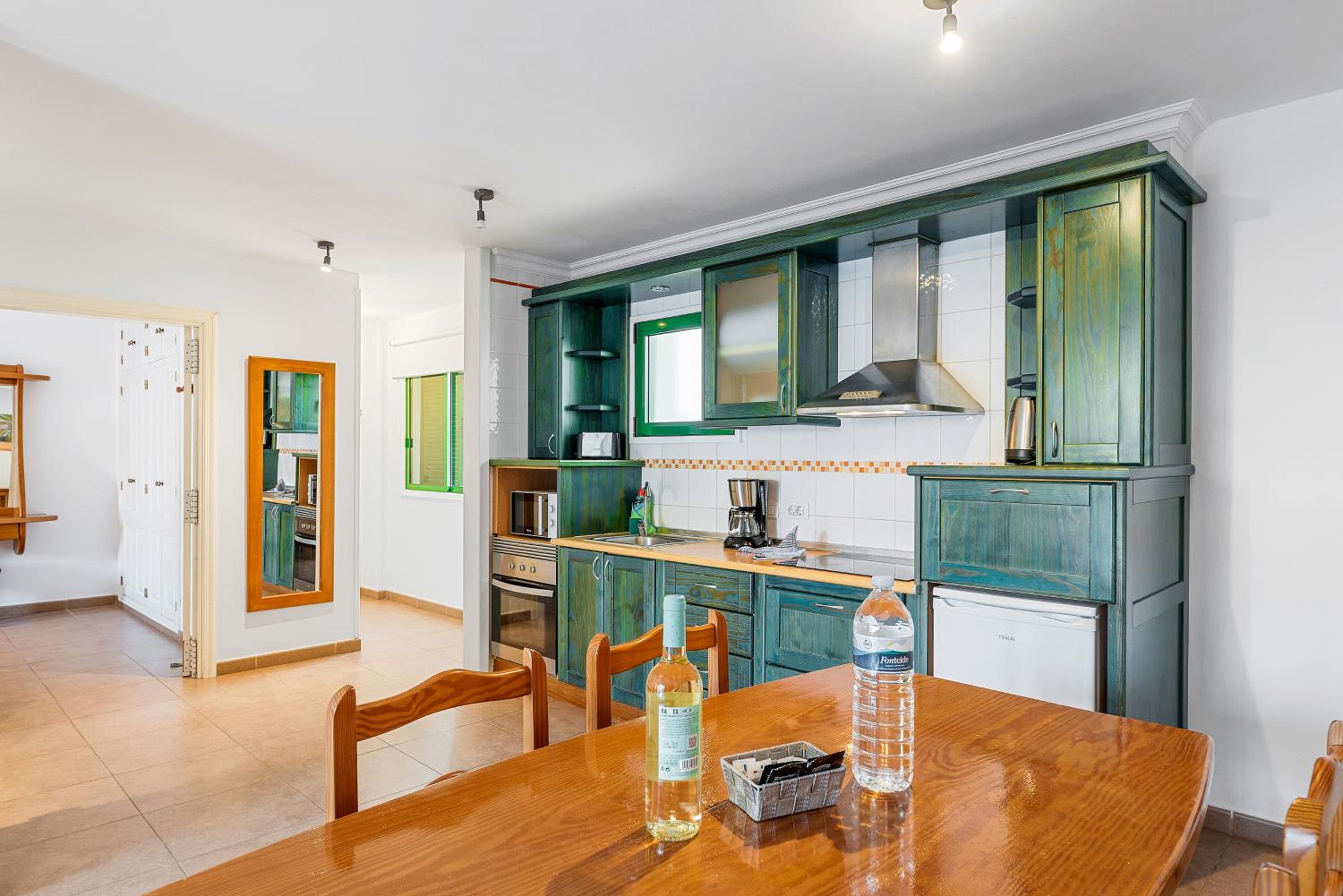 Appartement spacieux pour 2 personnes, avec vue sur les montagnes (oui, aussi sur le Teide) et bonne surprise par rapport à la vue GoogleMap, pas de construction juste en face, le projet a du être abandonné et c'est de la verdure.