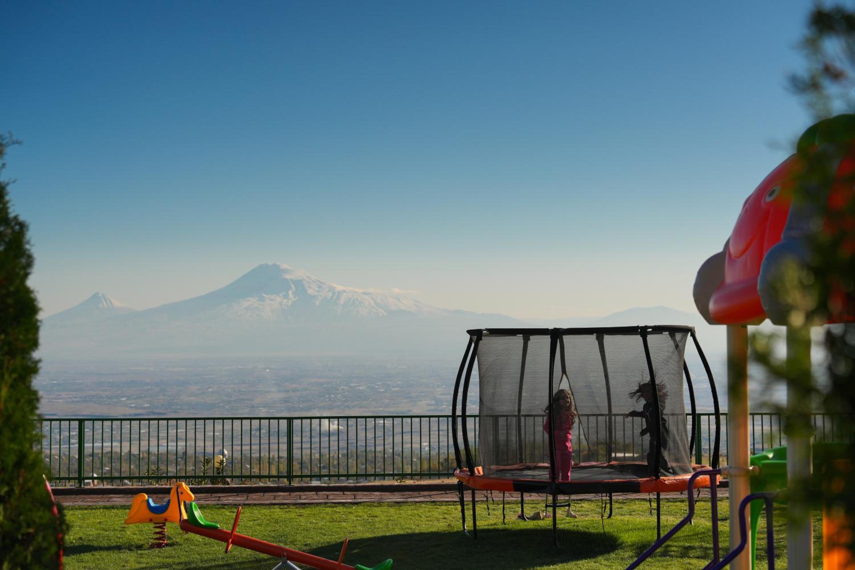 At Amberd Hotel, immerse yourself in luxury with breathtaking views of Mount Ararat from select rooms. Relax in rooms featuring a flat-screen TV, private bathrooms with premium amenities, and cozy seating areas. Unwind by the pool or in the garden while enjoying the serene surroundings.
