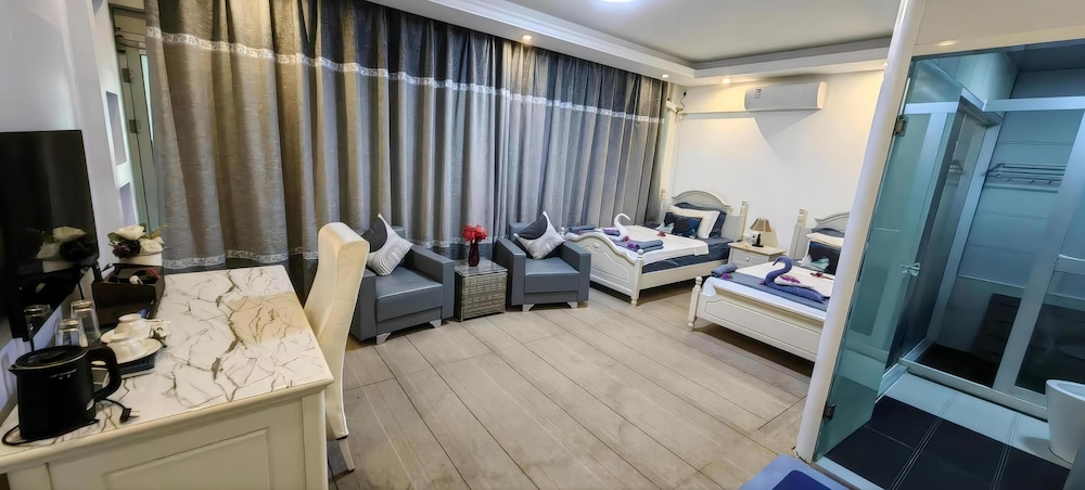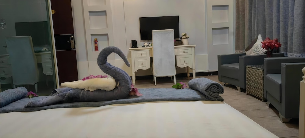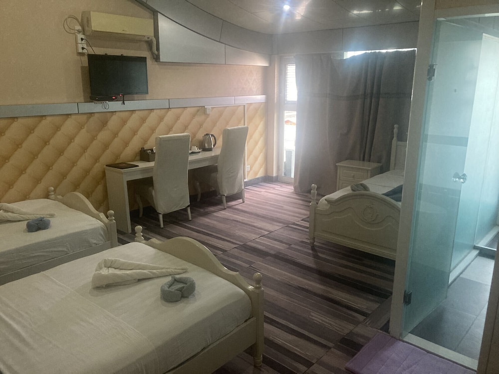 Schrecklich, einfach nur schrecklich. Ich bin keine Zicke oder super penibel... Ich reise viel um die Welt, zelte, wohne bei Familien, in einfachen Unterkünften. Aber so etwas von dreckig habe ich noch nie gesehen. Der Sessel hatte einen weißen Überbezug - mit braunen Bremsspuren. Dazu auf dem Teppich nur Flecken - das zugesagte Internet ist nur an der "Rezeption" empfangbar, man bekommt auch keinen Code, sondern darf nur einen QR-Code abscannen. Das funktiniert dann ja super mit Laptop. Das Bett war nicht gemacht, da befanden sich noch dunkle Haare vom Vorgänger. Als ich von der Rezeption (Internet) zurück kam und Licht machte, lebte der Boden. Ca. 3 - 5 cm große Tierchen, mehr als 10 rannten über meinen Boden. Die hinzu geholte Empfangsdame wollte eine mit einer Bürste erschlagen..... Also bestand ich auf einen Zimmerwechsel. Es ging hoch, vielleicht sicher vor Tieren. Im ersten Zimmer ging der Schlüssel schon gar nicht, im zweiten bekam die Empfangsdame die Klimaanlage nicht an. Im dritten Zimmer war dann alles okay - ich wollte ins Bett gehen, da kam die Dame, dass die Toilette nicht funktioniere. Hatte ich noch gar nicht ausprobiert. Ging aber wirklich kein Wasser. DAS war dann der Punkt, wo ich auf einem Anruf in einem anderen Hotel bestand. Die Antwort war nur, man könne dort anrufen, habe aber keine Nummer (naja, die hatte ich ja!) und eine Rückerstattung gäbe es auch nicht. War mir zu diesem Zeitpunkt egal. Nächster Tag 3 Mails, dass ich das Geld zurück bekomme...