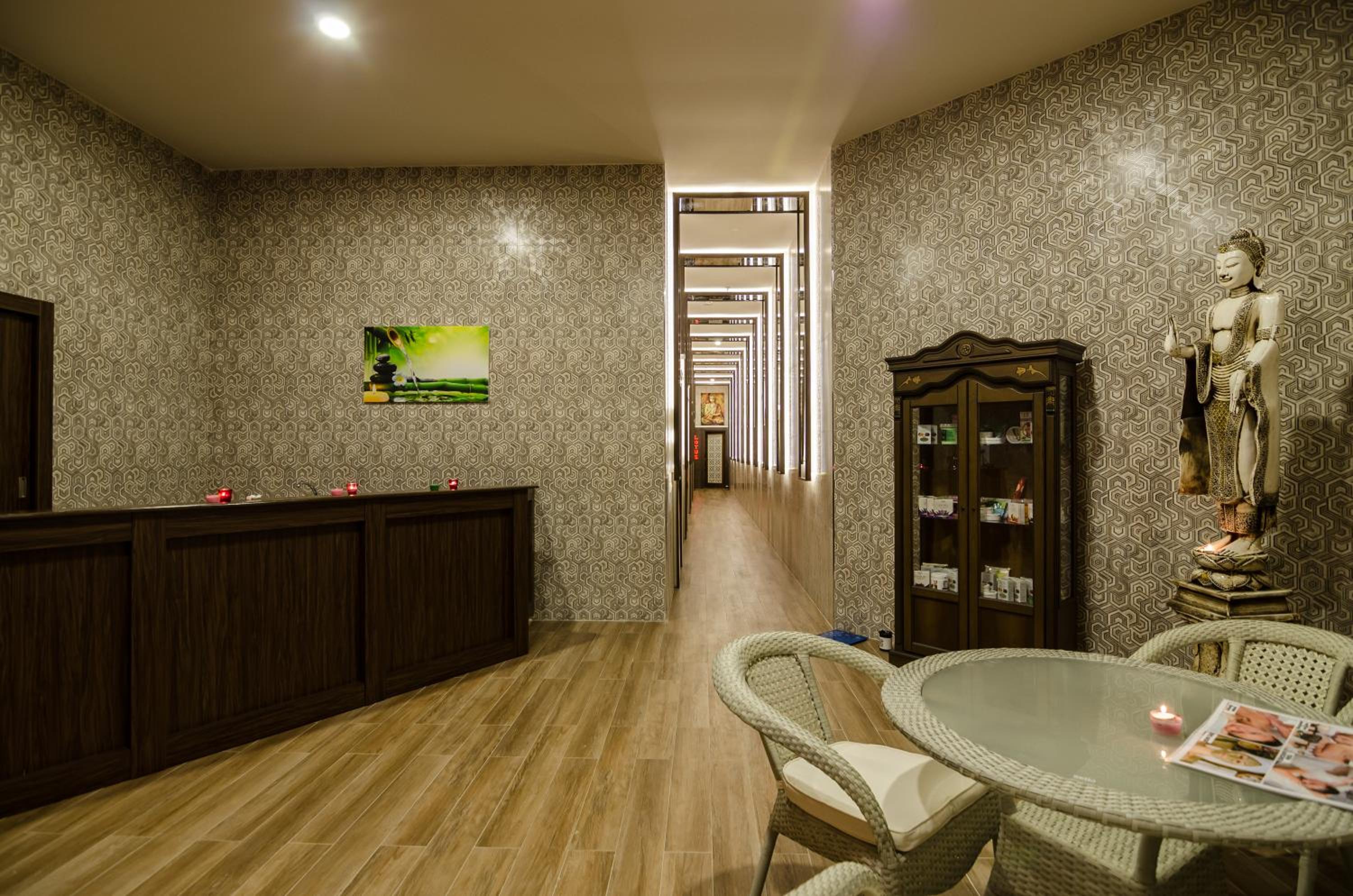 Indulge in ultimate relaxation at our spa centre with a sauna and hammam, or take a refreshing dip in the outdoor pool with a thrilling water slide. Stay active during your vacation by utilizing our well-equipped gym.