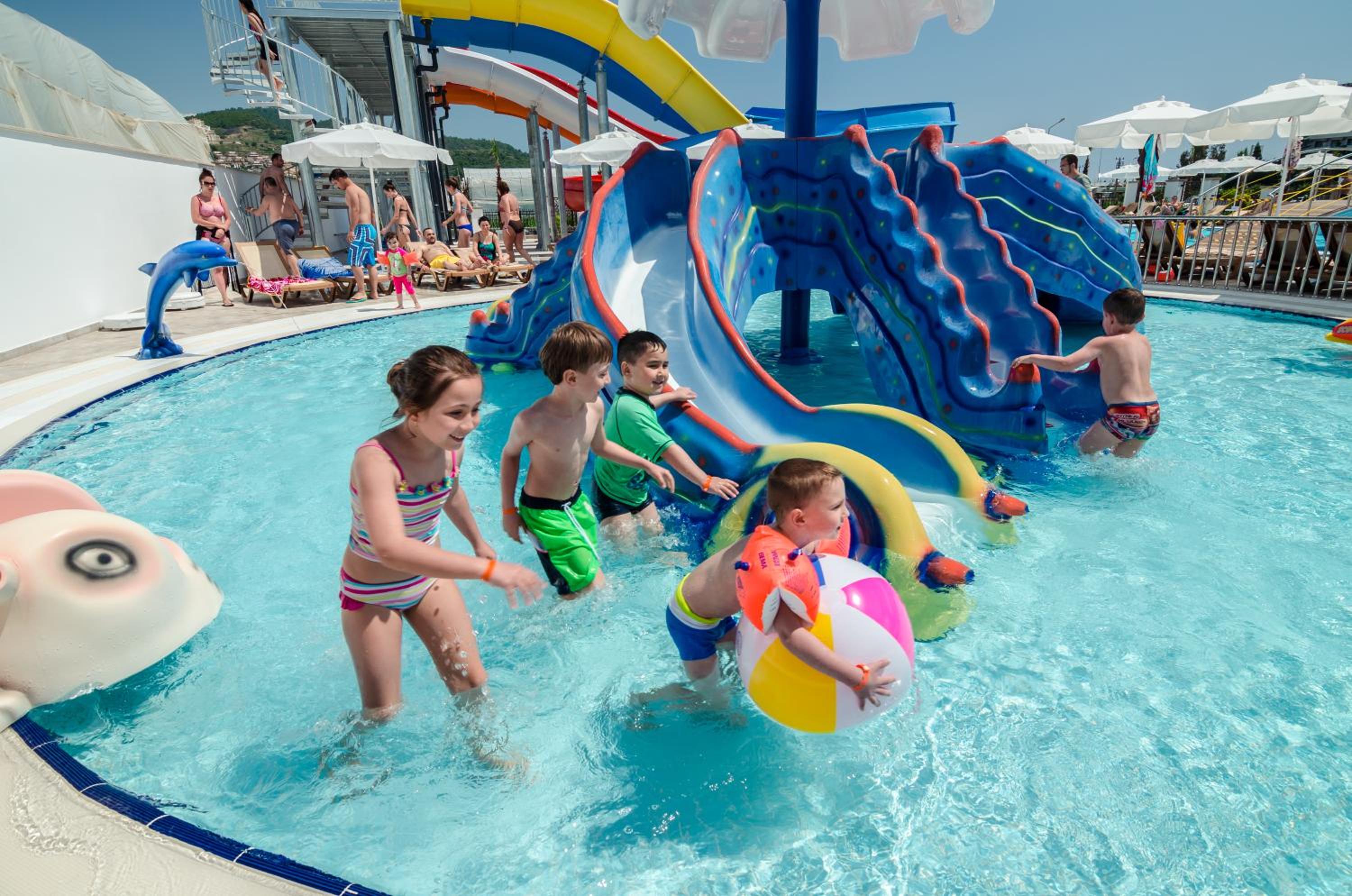 Came to this hotel in August as a family of 6! It is full of rude foreigners! The pools are rubbish no entertainment and the slide pool is dirty and way over crowded. Defo not a hotel catered for English people half of the food you don’t even know what it is! I would say this is an average 3 star not 5! Outside the hotel there is one bar that you can watch football in but hardly ever works it’s a very secluded area with not much to do! I wouldn’t recommend going here and I’m absolutely gutted paying so much money to come!