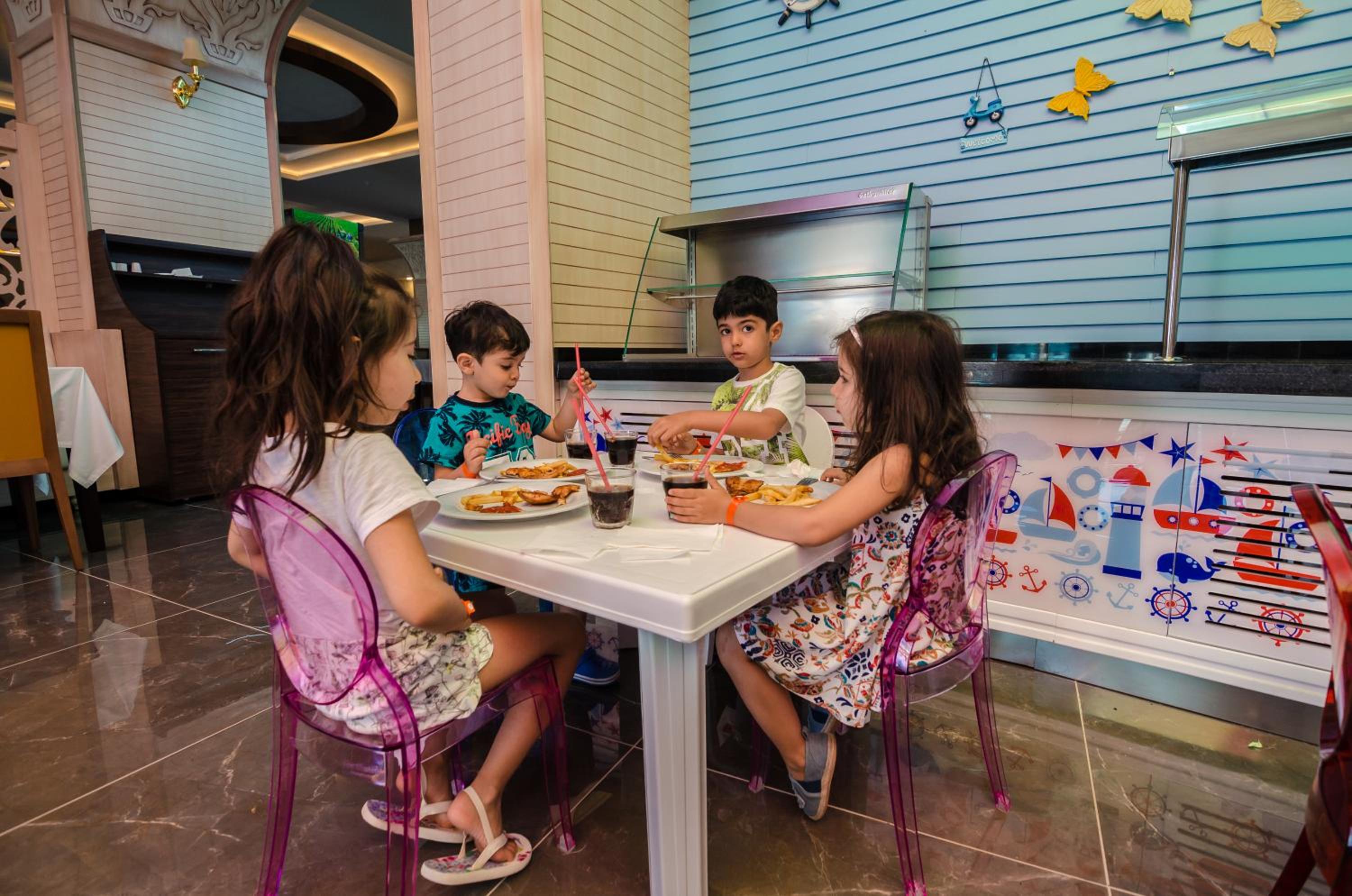 Food- This is a Russian eastern European hotel not catered for European or English tourists. Breakfast was mainly cauliflower, brocoli random vegetables from night before, soup,eggs, little sausages, chips, no cereals, yoghurt, bacon, sausages, only as an English person I would say this is shocking but to others this food maybe delicious, dinner and tea are the same at the restaurant chicken, beef and fish dishes with potatoes and various vegetables, the bbq grill outside was lovely, one 7 year old embraced the new foods trying everything and one ate chips and nuggets every night