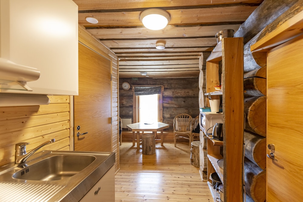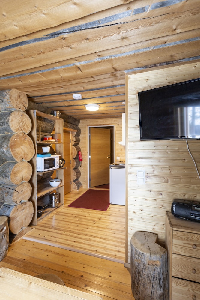 An excellent traditional log cabin on a quiet road in central Saariselkä. Very roomy for our family of 3. Great facilities for a comfortable stay. Well equipped kitchen, very roomy lounge with log burning fire. Own sauna and spacious shower facilities. Beds a bit soft for me and whilst many tea cups, could do with more mugs.