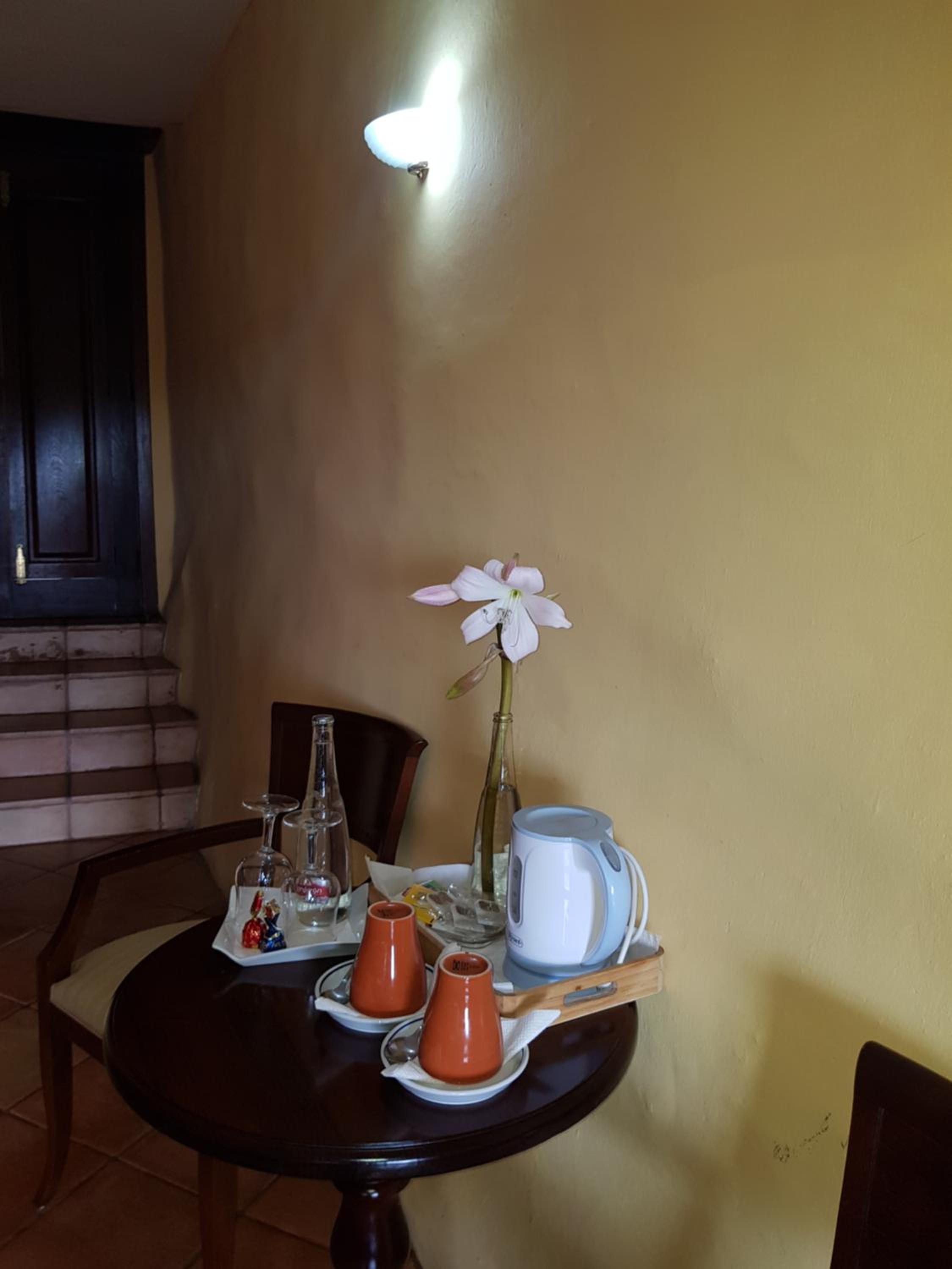 Vi hade ett mysigt rum med egen liten pool med underbar utsikt. Bra sittytor och solsängar. Sängen var ok! Frukosten var bra! Det är även en restaurang så boka bord innan då det ligger avsides! Bra fri parkering.