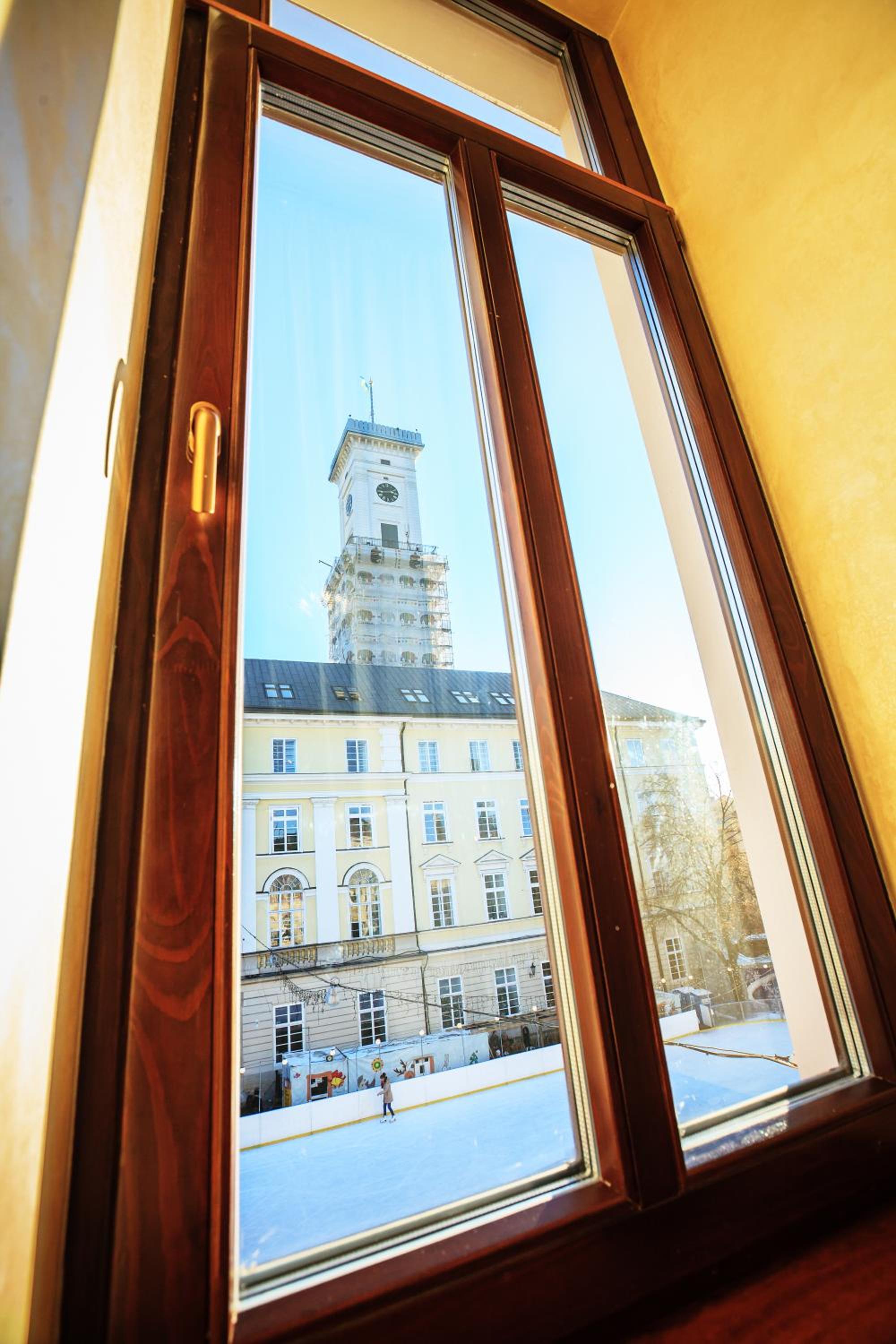 Зручне розташування в самісінькому центрі. Вид з вікон на ратушу. Наявність кондиціонеру. Привітний персонал.