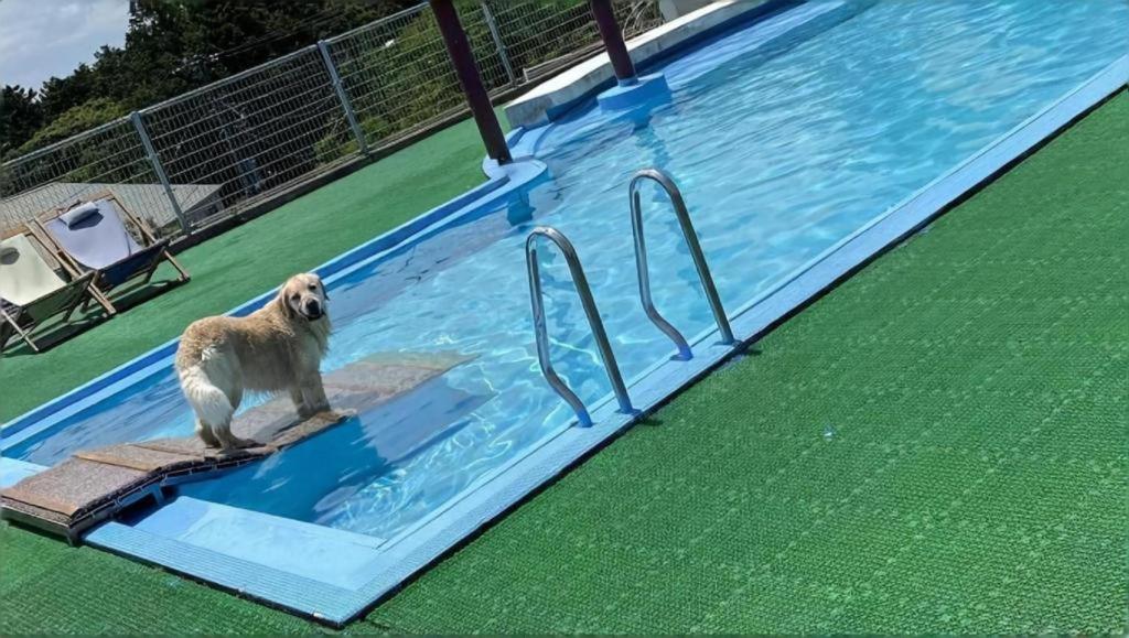 一部の口コミにもありましたが清潔感にはかなりかけます。今までペット同伴できる宿は何件もお世話になってますがアメニティも充分ではなく、匂いも鼻につくほどありました。プールでもシャワーの水が少ししか出なくて最後十分に洗う事はできず、料金も季節的にもありますがかなり高かったので、全体的に残念な感じでした。