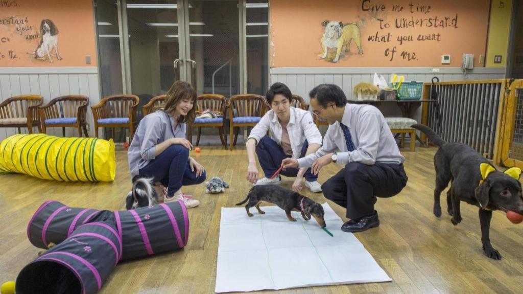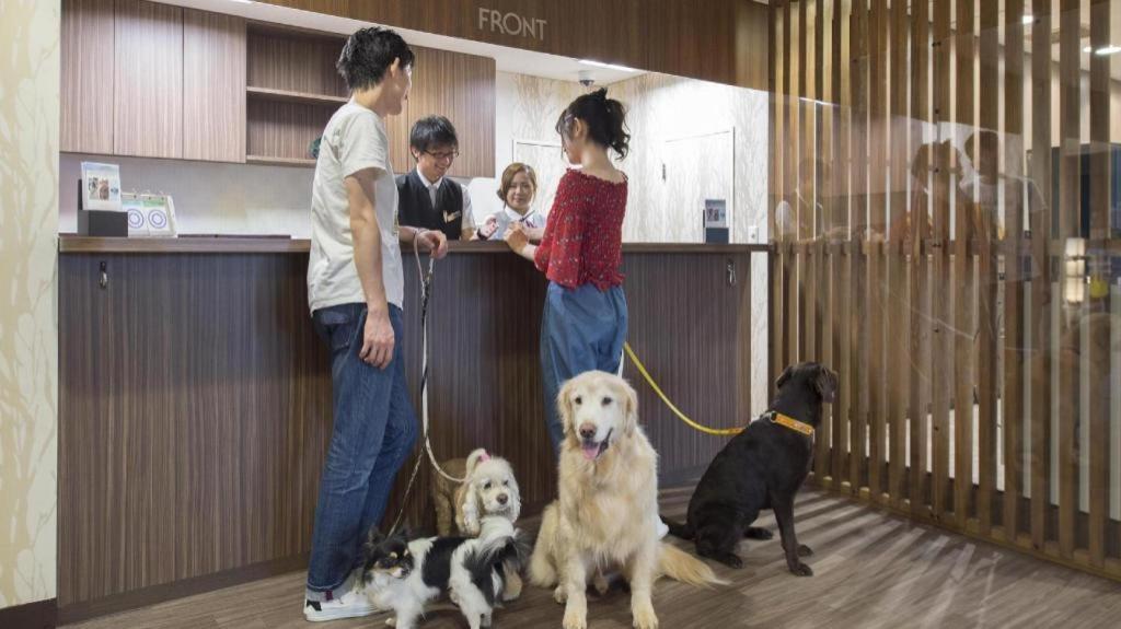 リードを付けて管内を歩け、おしっこシートはあちこちに置いてあり、犬連れにはとても温かいホテルです。