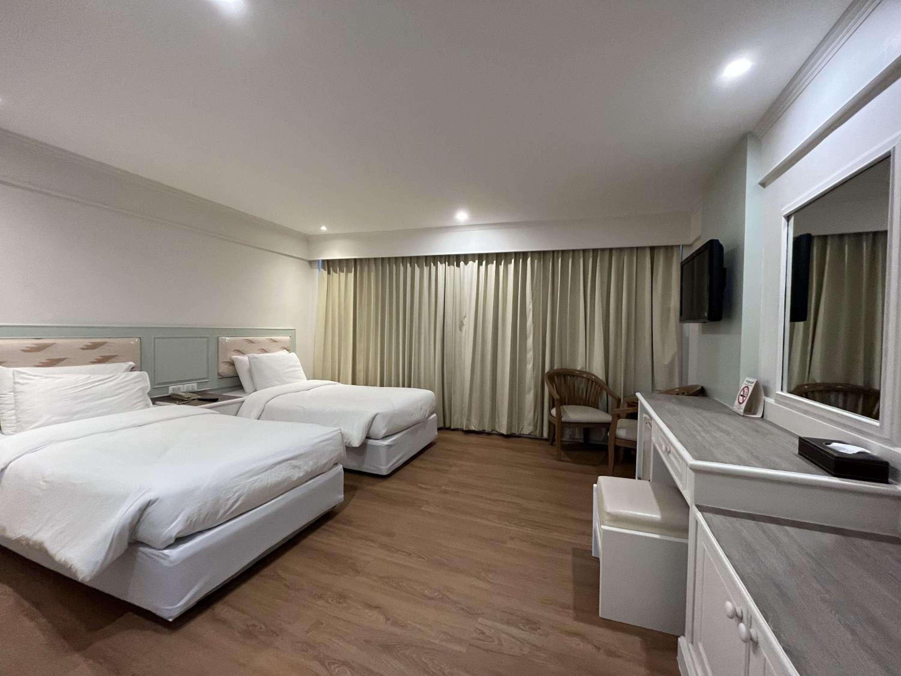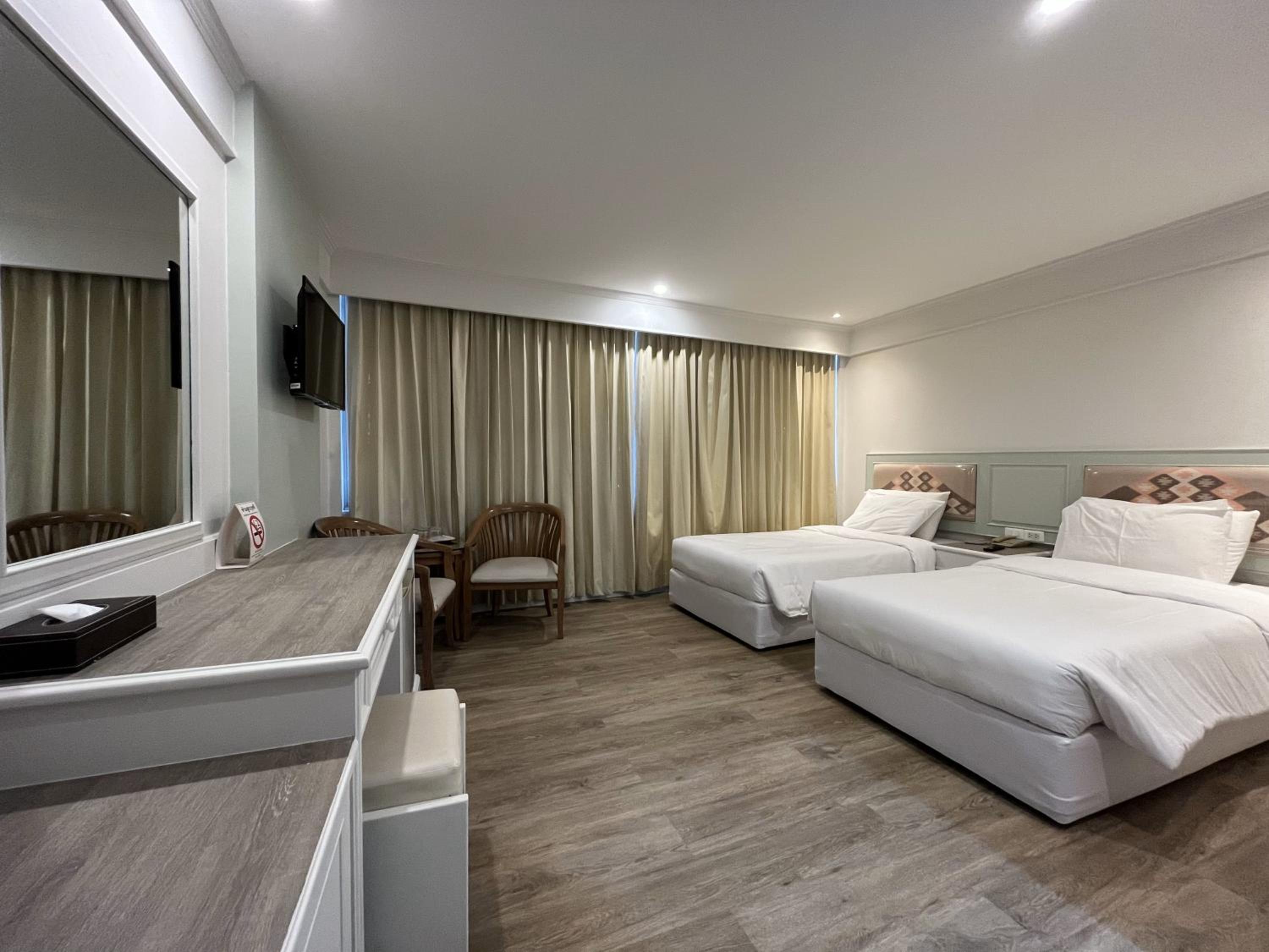 The air-conditioned non-smoking rooms at Dhevaraj Hotel are well-equipped with free Wi-Fi, cable TV, and complimentary drinking water, ensuring a comfortable and relaxing stay for guests.