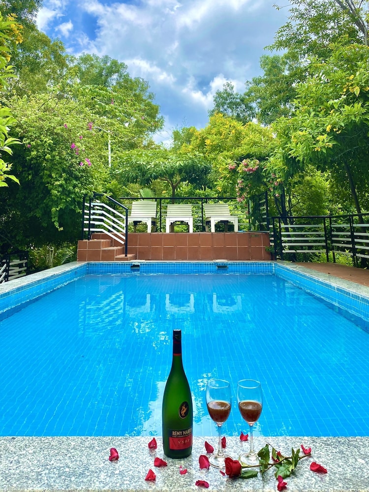 Indulge in the outdoor pool and enjoy the serene view from the terrace and garden.