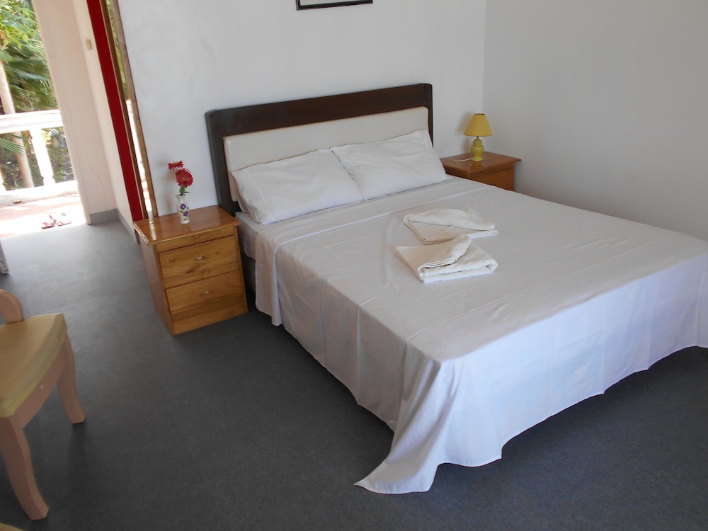 Je suis plutôt mitigée sur mon séjour à cet hôtel. Nous avons été charmé par les lieux et l'emplacement mais la chambre était humide, les draps tâchés, les meubles et douche/toilette usées et mal entretenu. Les draps étaient vraiment humides et s'en était très inconfortables. Nous avons par contre aimé la nourriture du restaurant et le petit déjeuner. Nous avons aimé la piscine et l'emplacement face à la mer. Pour se baigner dans la mer, apporter des souliers d'eau car il y a des centaines d'oursins énormes et, même avec des souliers d'eau, c'est risqué de se piquer. Cependant, l'apnée et la plongée y sont très belles selon le propriétaire du centre de plongée dur place. La plongée à l'autre Tori's, le backpackers, est exceptionnelle.