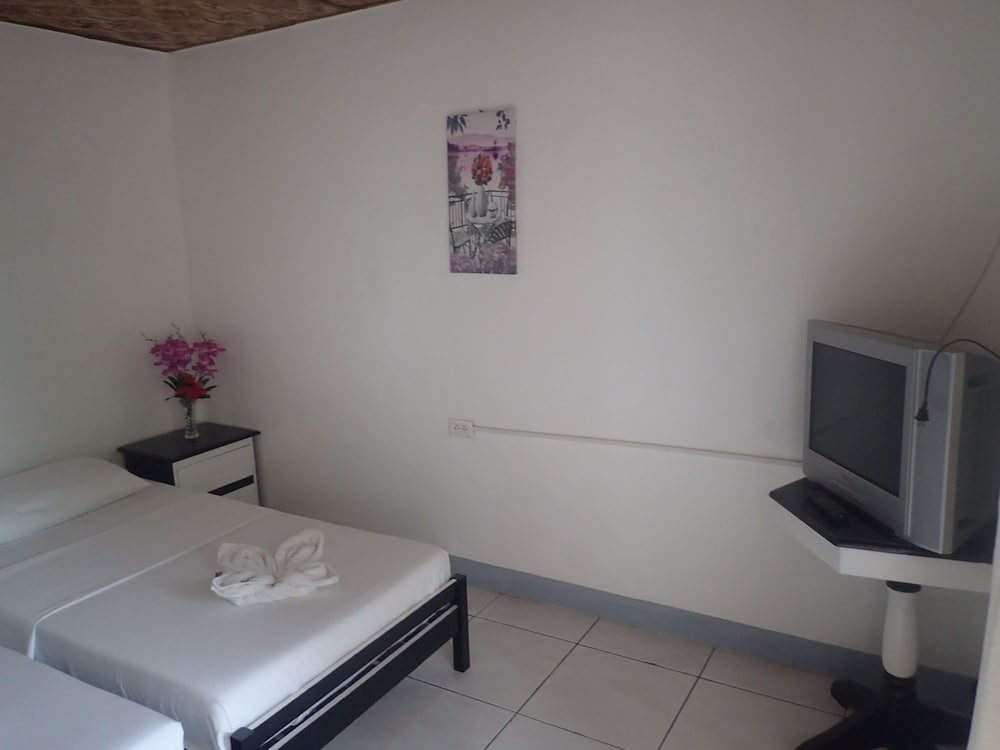 The floors in the room were peeling up, crack and in some areas all worn out. ( I have pictures to prove this ) The ceiling is all faded and with dangling electrical wires. ( I have proof of this aswell ) The mini fridge didnt work, nor did the TV. The outlets in the room were no functional with the exception of 1x. If you looked in the open closet area you will see screws pertruding into the room as if someone was crucified in there from the previous night. ( I have pictures of this aswell ) The odor of the room made you think this had happened just moments before arrival. The windows wouldnt close all the way so the outside noise, bugs, moisture and heat would just come right into your room. ( And this ) The curtains wouldnt give you much privacy from the room facing this room due to the simple fact the stained curtains would'nt cover the windows completely. ( This too ) The linens were not suitable for outside animals to even use because they were heavily soiled and damp. ( Yep and this ) The light switches would shock you if you turned them on or off and the strobing from lights would put you into an instant seizure. The bathroom was very tiny but they did have hot salty water for you to shower with just make sure to check for those nasty towels that werent left in the room.
