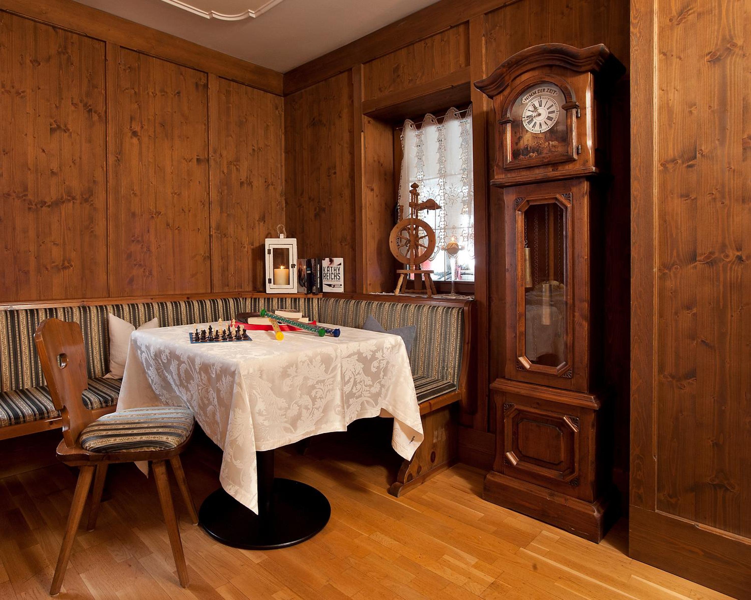 Perfect location in Corvara, comfortable, spacious rooms, excellent restaurant serving breakfast and dinner, spa with beautiful pool, jacuzzi tub, sauna, steam room, ski bus stops right in front of hotel.