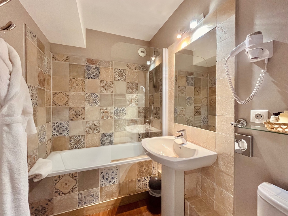 Très bel Hotel. Situé dans le centre de Bayonne. Bouilloire et machine à café dans la chambre. Bon lit. Spacieux. À recommander.