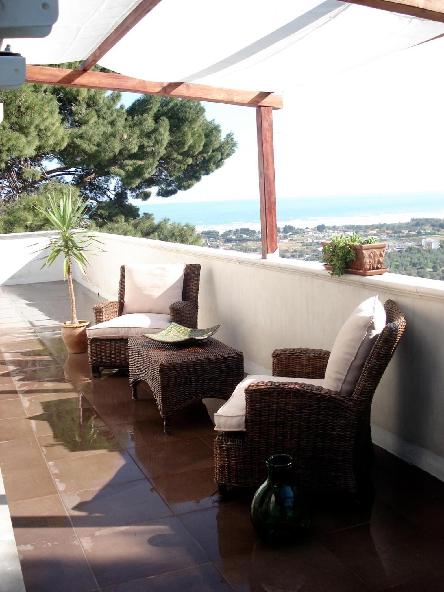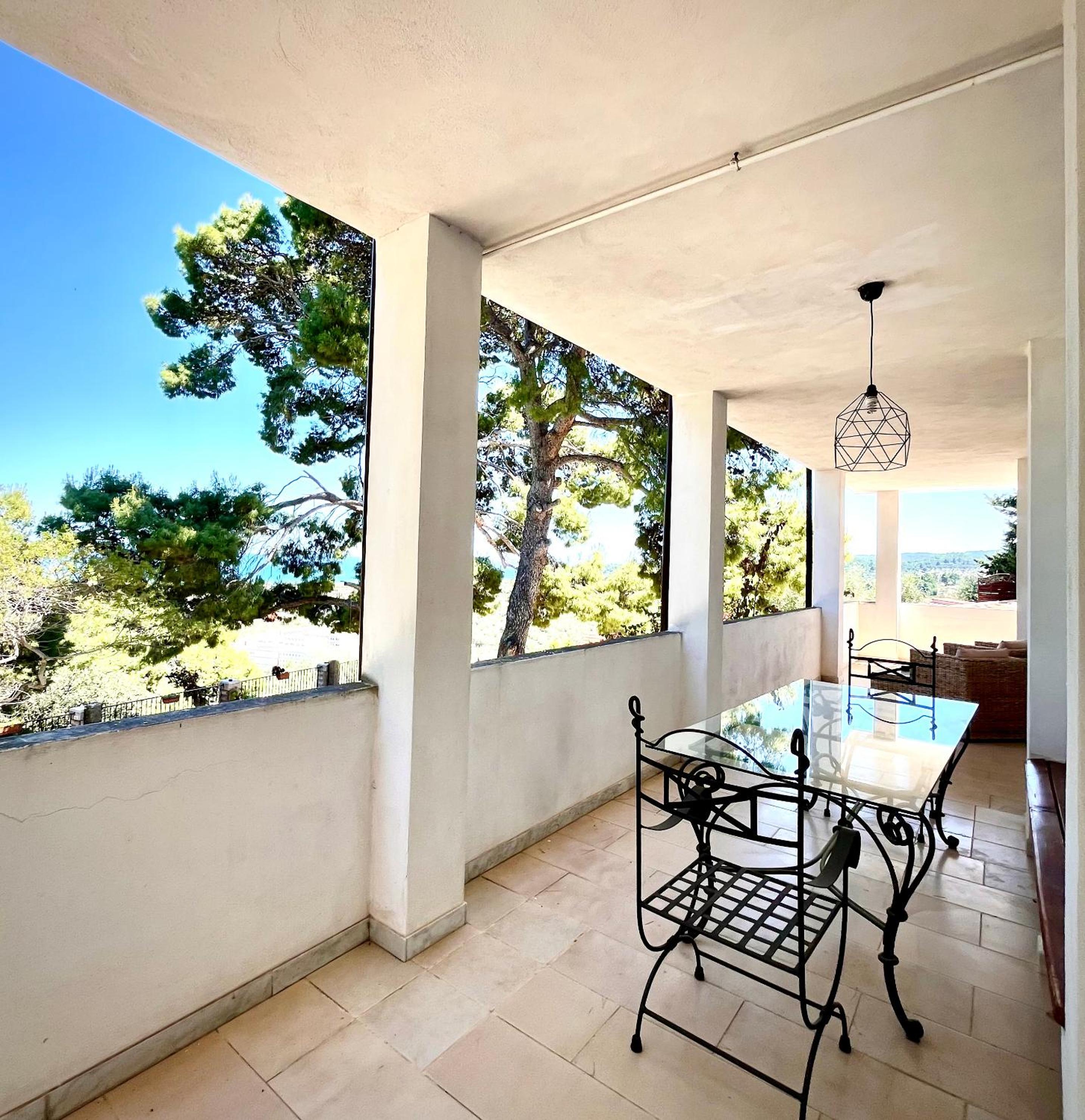 Bellissima vista del mare dal terrazzo ampio e comodo per mangiare fuori.