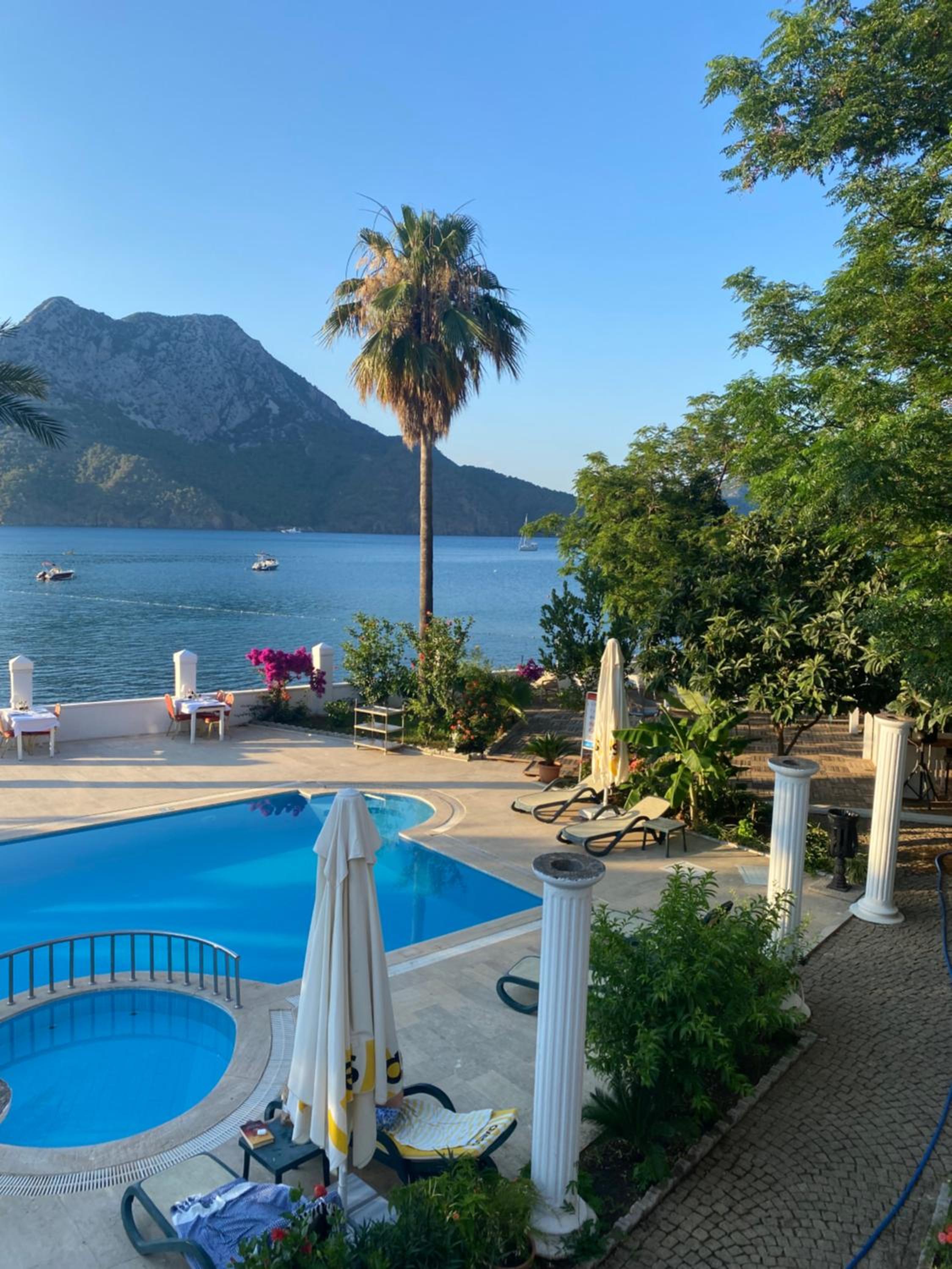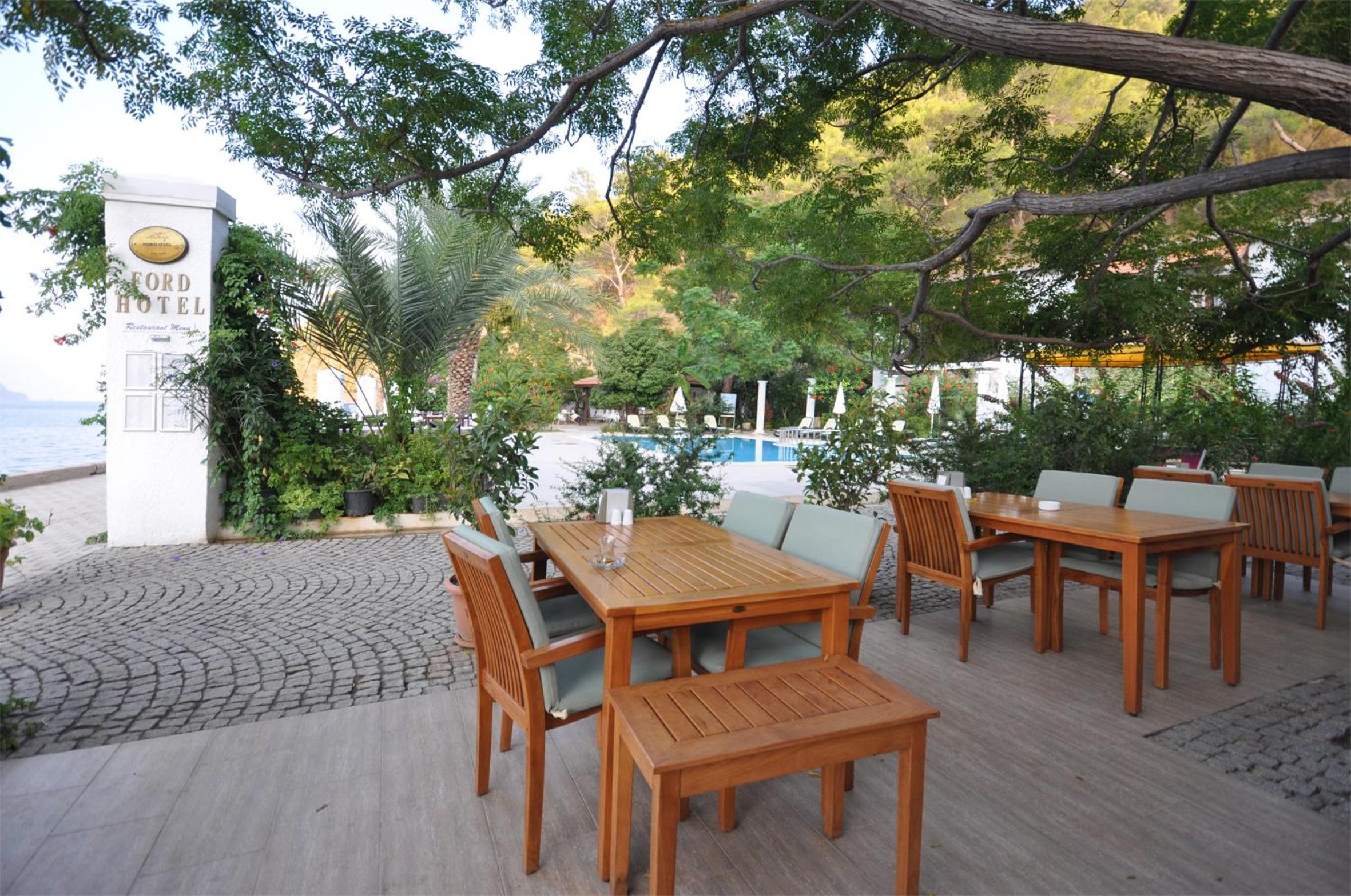 on a lighter note. the outside of the room is faultless. the food area and the pool are beautiful. the location is so near the beach that I would guess that this is why ford is probably one of the priciest of the accommodations Adrasan has to offer.