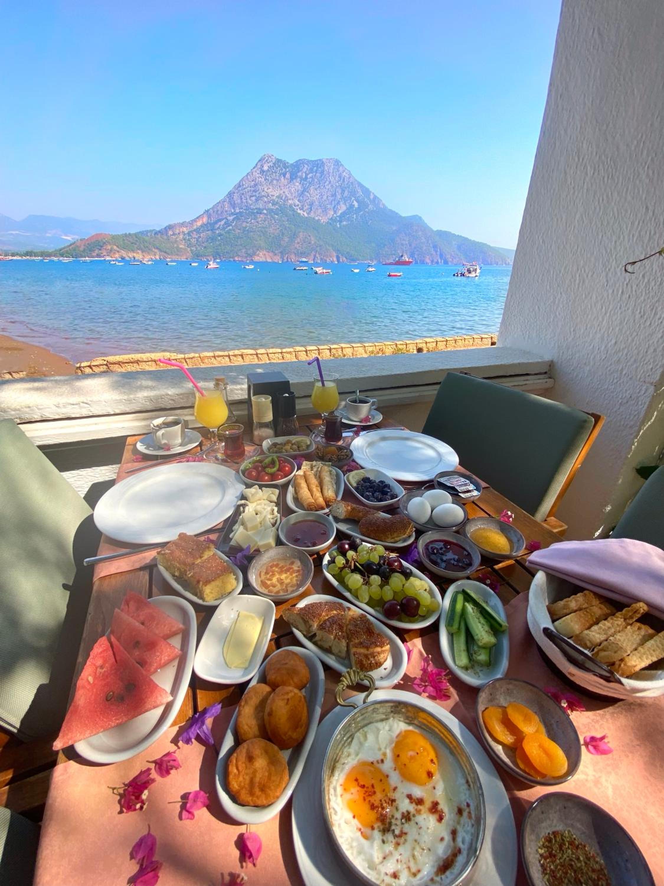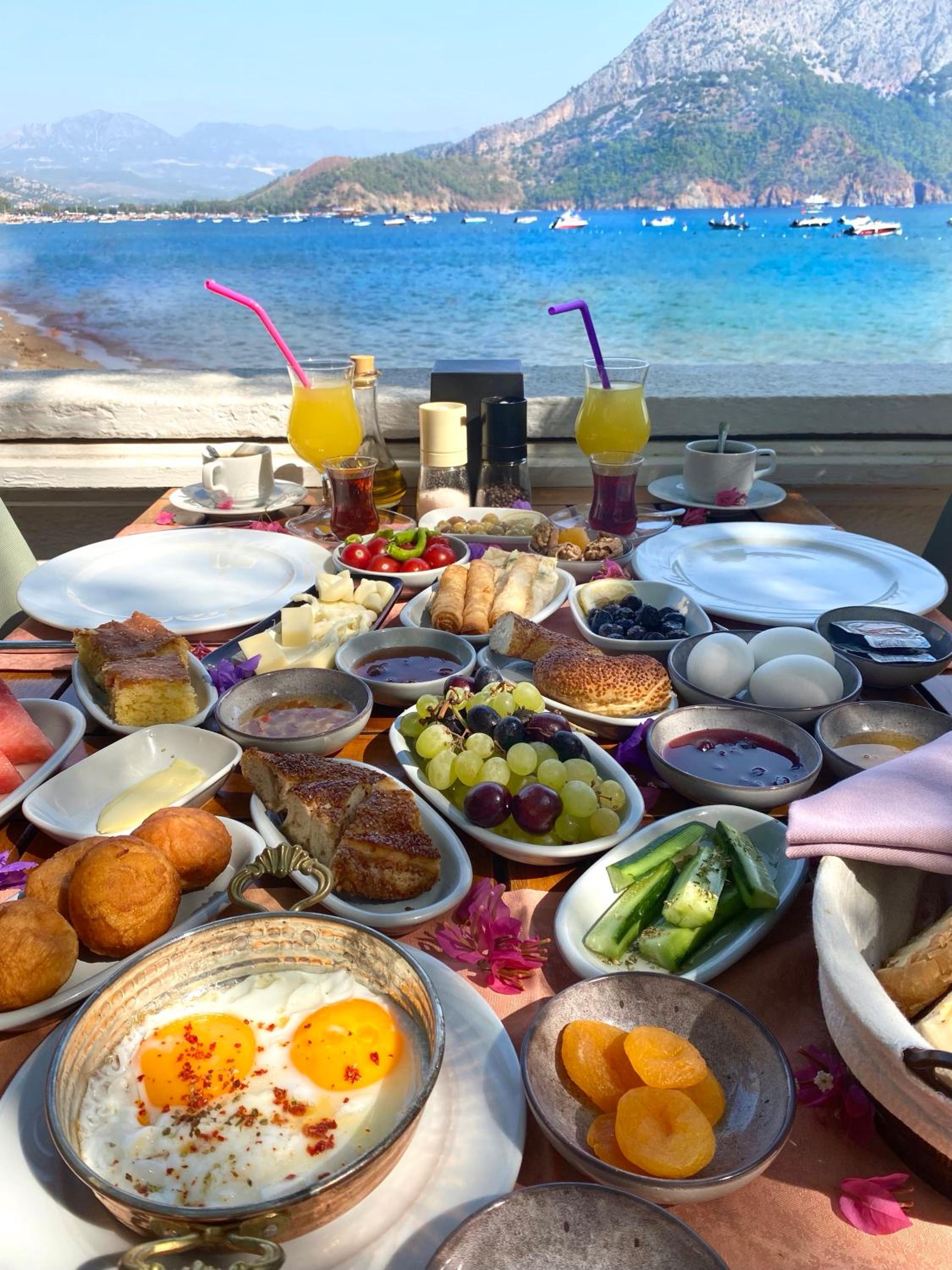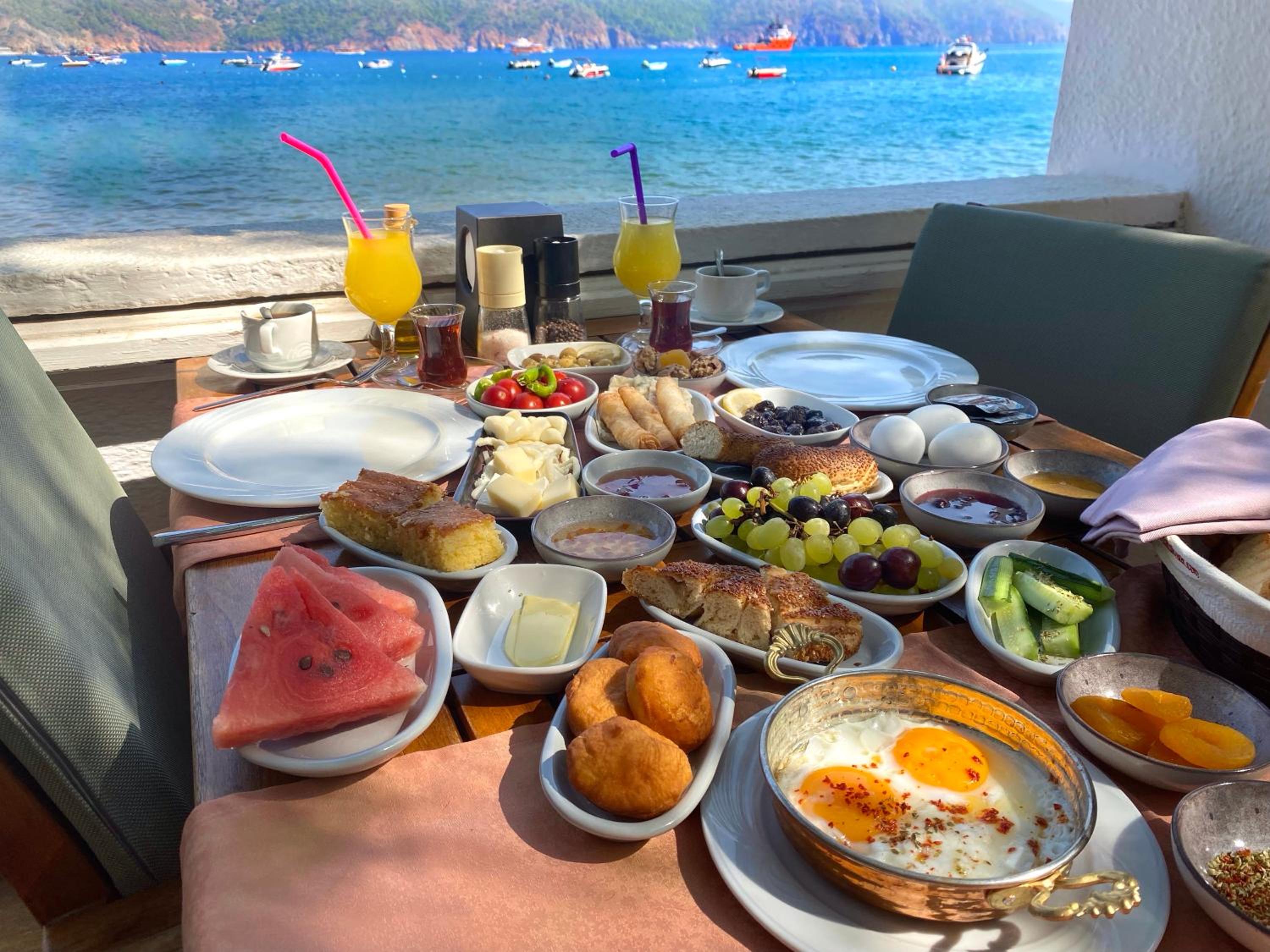 Breakfast was a feast every morning with Turkish tea and Nescafé coffee.