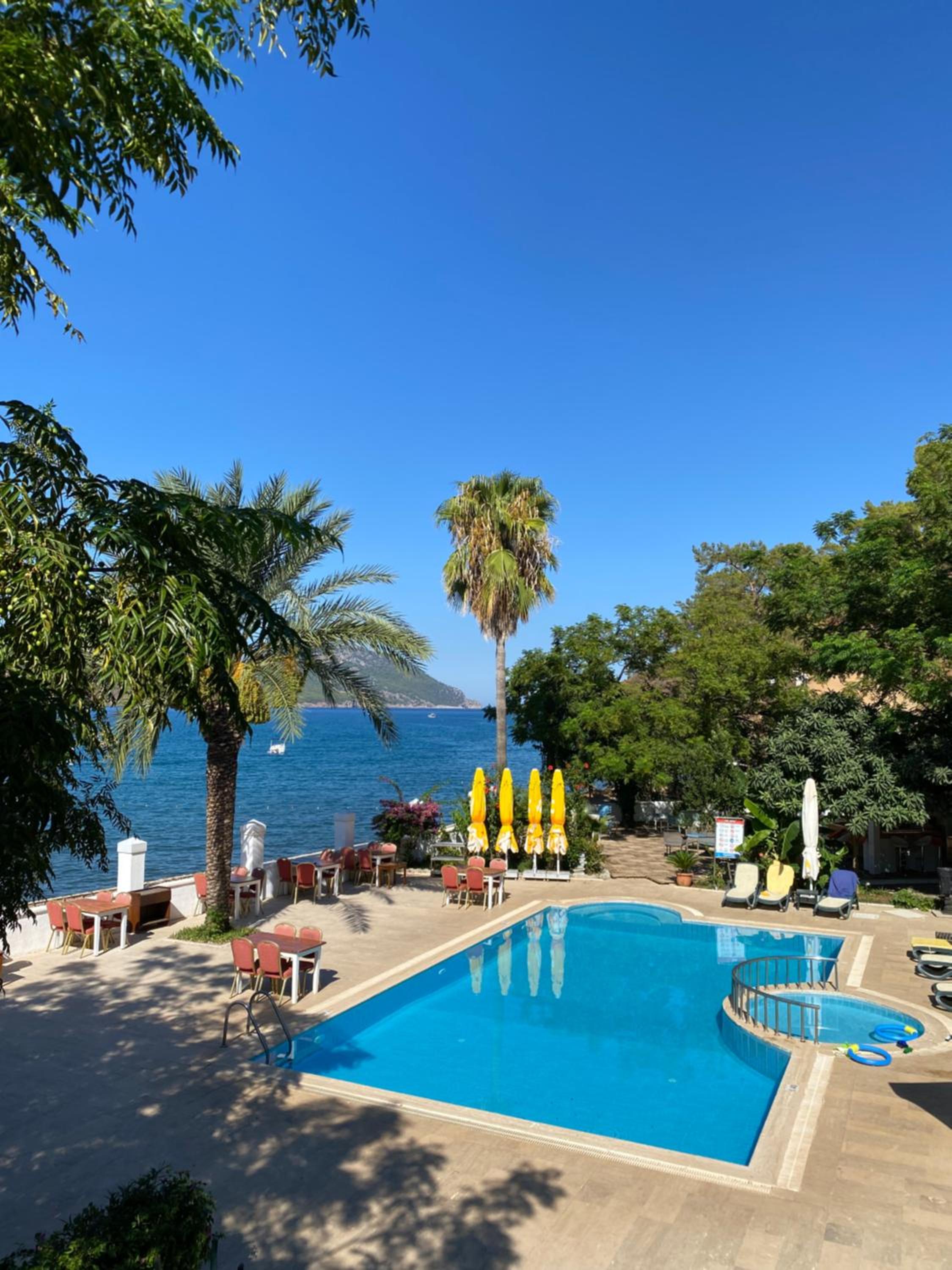 Otele ilk girisimizde hotels.com ile anlasmamiz yok diye bizi geri çevirdiler.Bunu da hala nasil oluyor anlayamadik ama...neyse daha sonra zor da olsa giris yaptik.Otel konumu haric berbat!Konumu haric diyorum cunku deniz 2 metre uzaklikta...amaa sezlong ve semsiyeler belediyenin (tum adrasanda oyle sadece buraya ozgu degil) yani sabah erken kalkmazsaniz otele 500 metre uzakta bir sezlong bulup denize girebilirsiniz...Temizlik cok kotu fiyatlar anlamsiz bir sekilde pahali...menülerde otel musterisine hicbir indirim yok...yani disardan gelen musteriker ile size gelen fiyatkar ayni...kahvaltida bir tane sıcak tabagi bile yok.saat gece 12 bucukta barı kapatiyoruz diyen bir gorevli geldi. Zira aksam yemegi de neredeyse 11 gibi bitiyo tum masalar toplaniyor. Konakladiginiz alanda ikiye ayiran bir metrelik koridorla ayrilmis odaların kapıları karşılıklı, yani karşı odadaki gurultu aynen size geliyor.Bu yuzden sessiz bir konaklama istiyorsaniz burayı tercih etmemelisiniz.