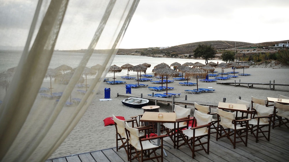 Paradiso is a small hotel overlooking a famous Paros beach called Malatesta. The 2 ladies who work there, Anna and Natasha , were incredibly pleasant and helpful. The hotel is constituted of typicalky Greek white washed walls ndividual rooms or suites overlooking one of the most popular beaches in Paros. In spite of that, the hotel is quiet.Breakfast is served in the tiny breakfast room on a tray and everyone can sit on the terrace outside and admire the view while eating.