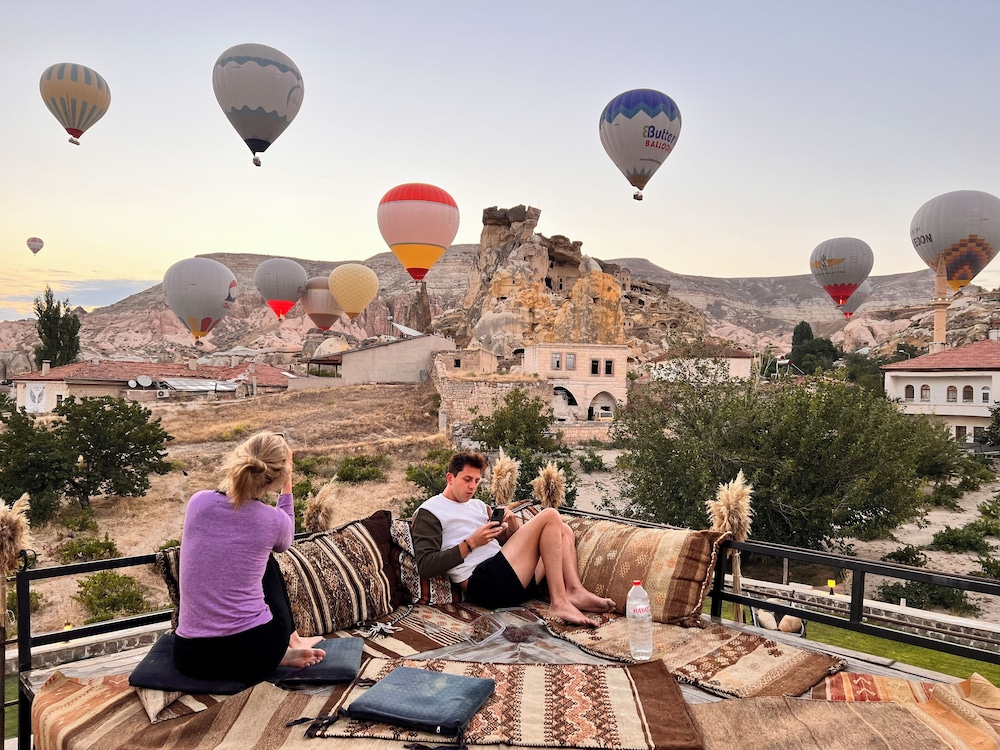 2 gece kaldık yıl dönümümüz için gitmiştik ve oldukça memnun kaldık . Sabah balonların harika izlendiği ve oldukça yakından uçtuğu harika bir manzaraya tanıklık edebilecegınız bir otel benım de seçim sebebimdi pişmanda olmadık pandemi kurallarına oldukça uyuyorlar el değmemiş ürünlerle kahvaltı keyfi yaşıyorsunuz çalışanları oldukça nazik ve oldukça yardımcı oluyorlar nereyi gezmeniz gerektıgı konusunda da yine tercıh edebılecegım bir oteldi teşekkürler :)