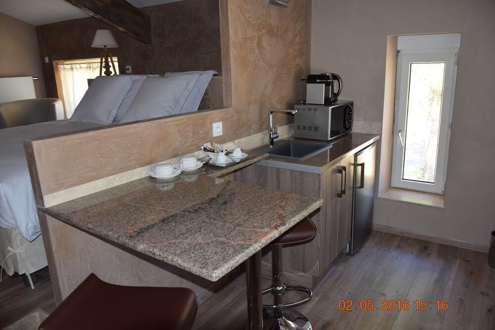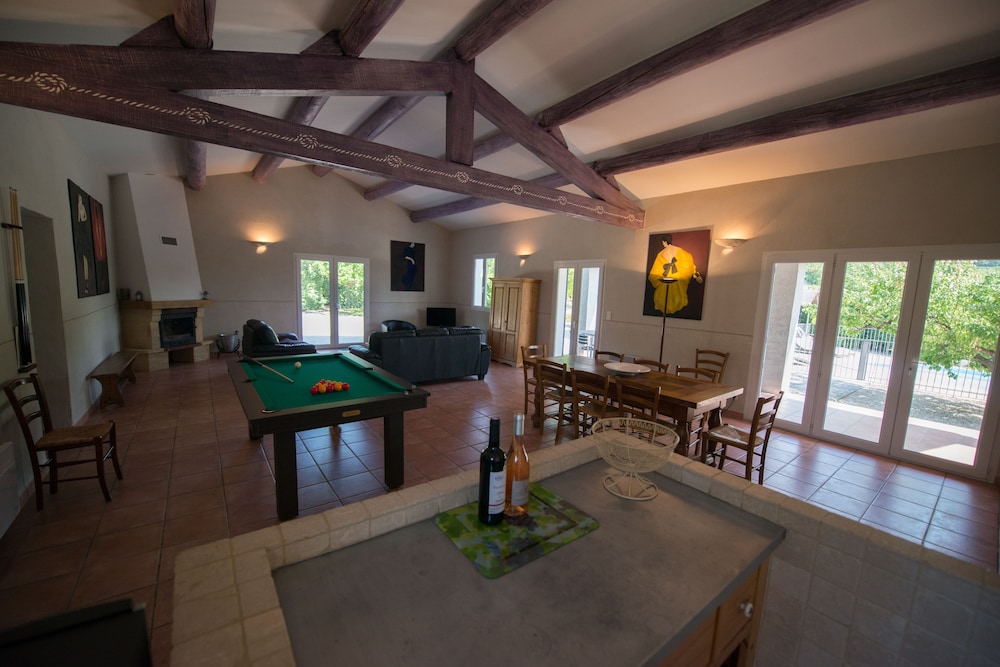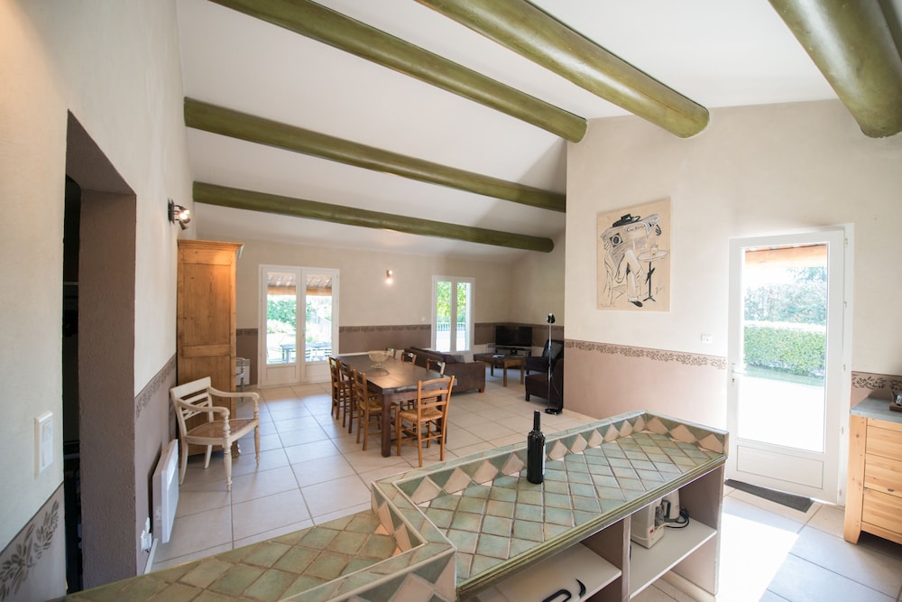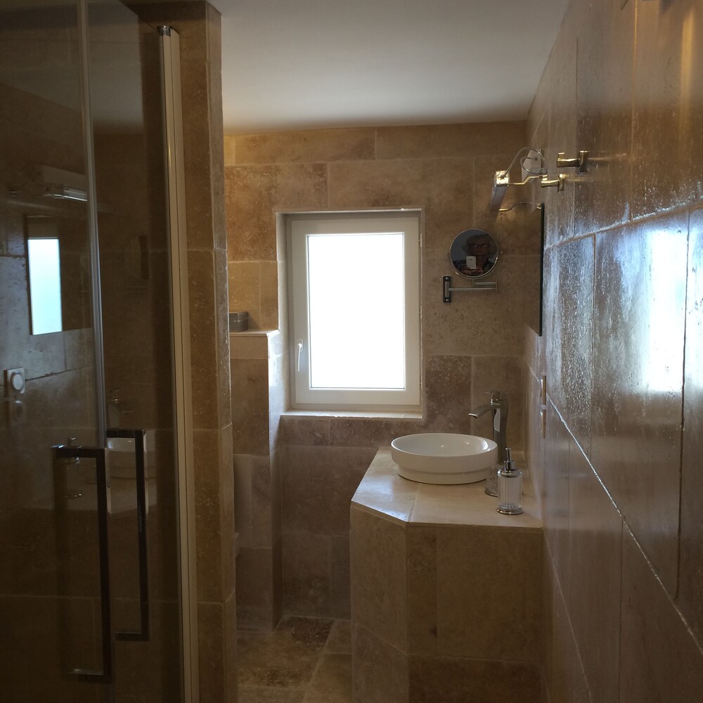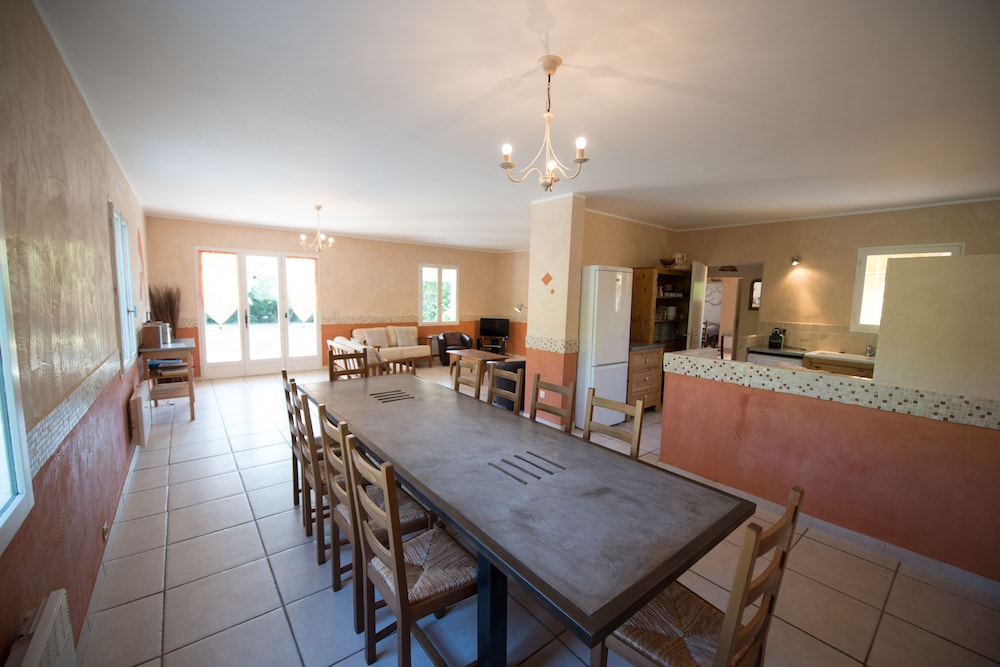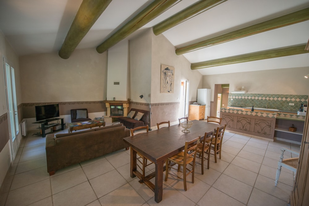 Cudowne miejsce. Szukaliśmy ciszy spokoju i właśnie w tym miejscu znaleźliśmy. Rewelacyjne położenie - blisko Mont Ventoux (kultowa trasa rowerowa - rower był z nami). Pokój bardzo wygodny (brakowało mi tylko półki np. pod TV - na drobiazgi, które wozimy ze sobą). Piękna duża łazienka. Basen odkryty obok- dla relaksu - leżaki, stoliki. Nocą fantastycznie widać gwiazdy. Parking obok domu. Śniadanie - ok - francuskie. Do miasteczka tylko 15 minut piechotą.