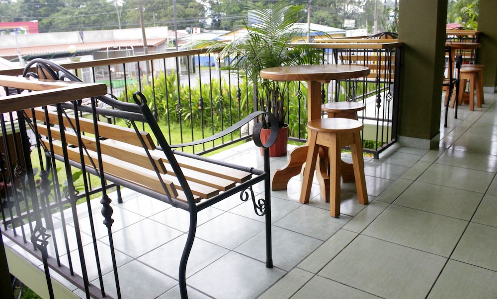 Just sreps from bus station. Tour info in same lobby. Somewhat noisy as in center of town. Incorrectly advertises as B and B. Breakfast was just coffee and toast. Other hotels gave me a full breakfast with fruit, gallo pinto and eggs. Comfortable and convenient for the price.