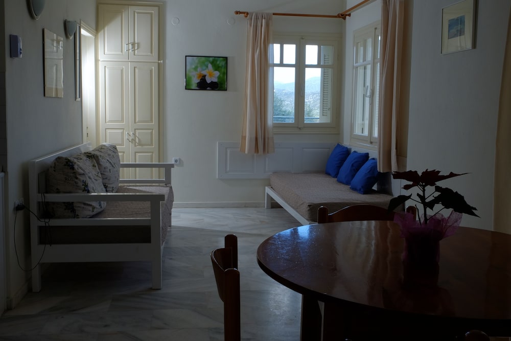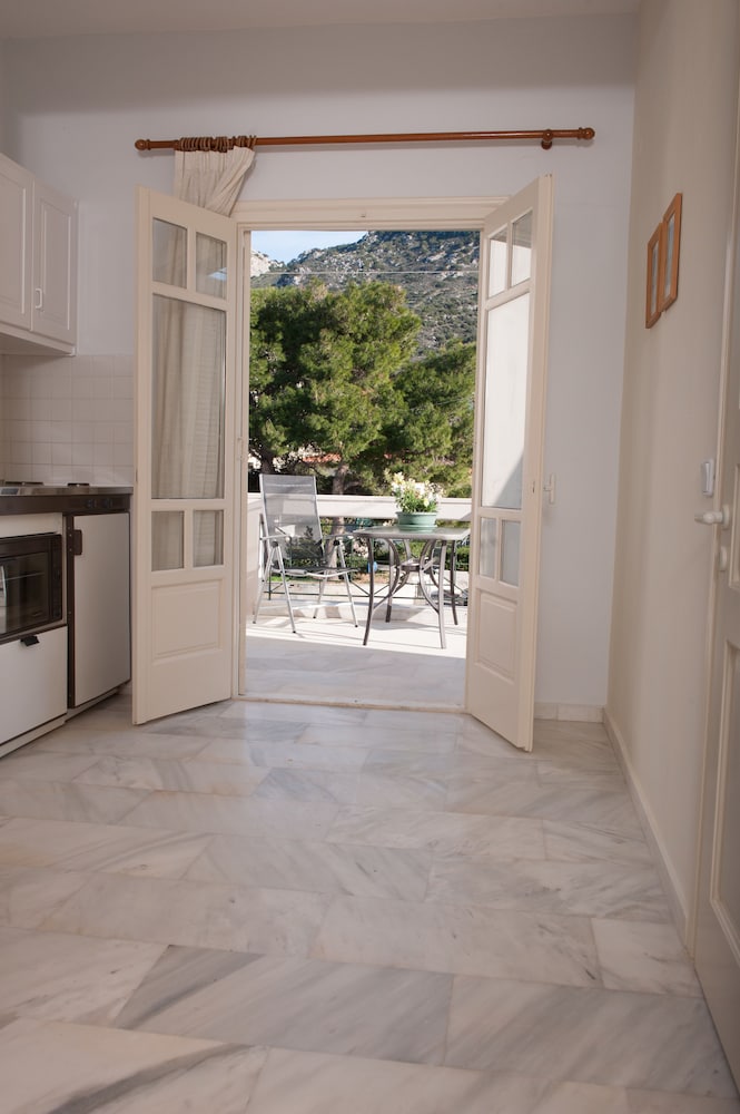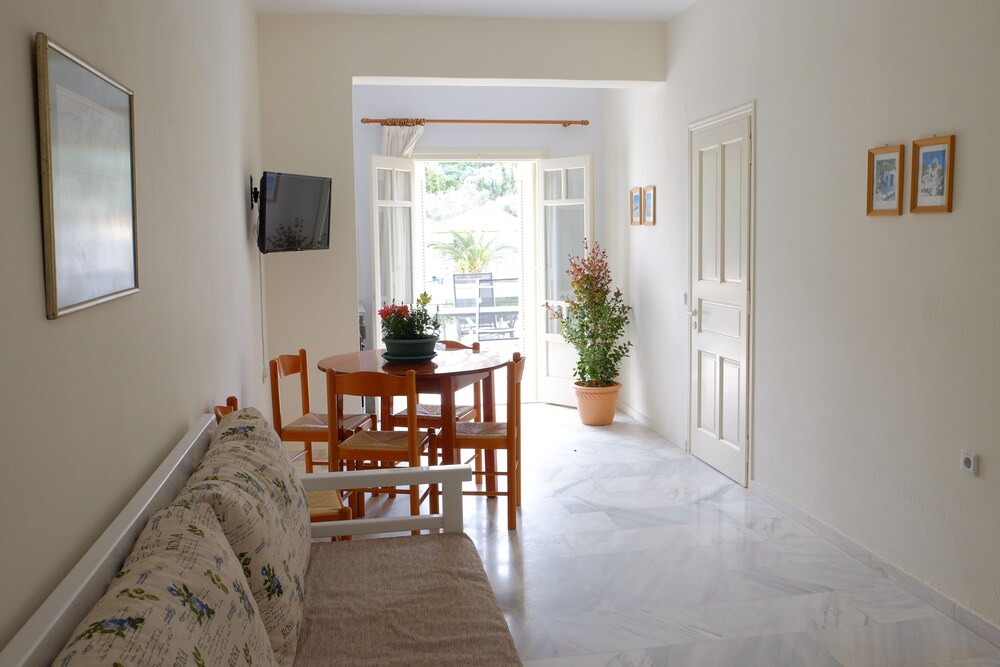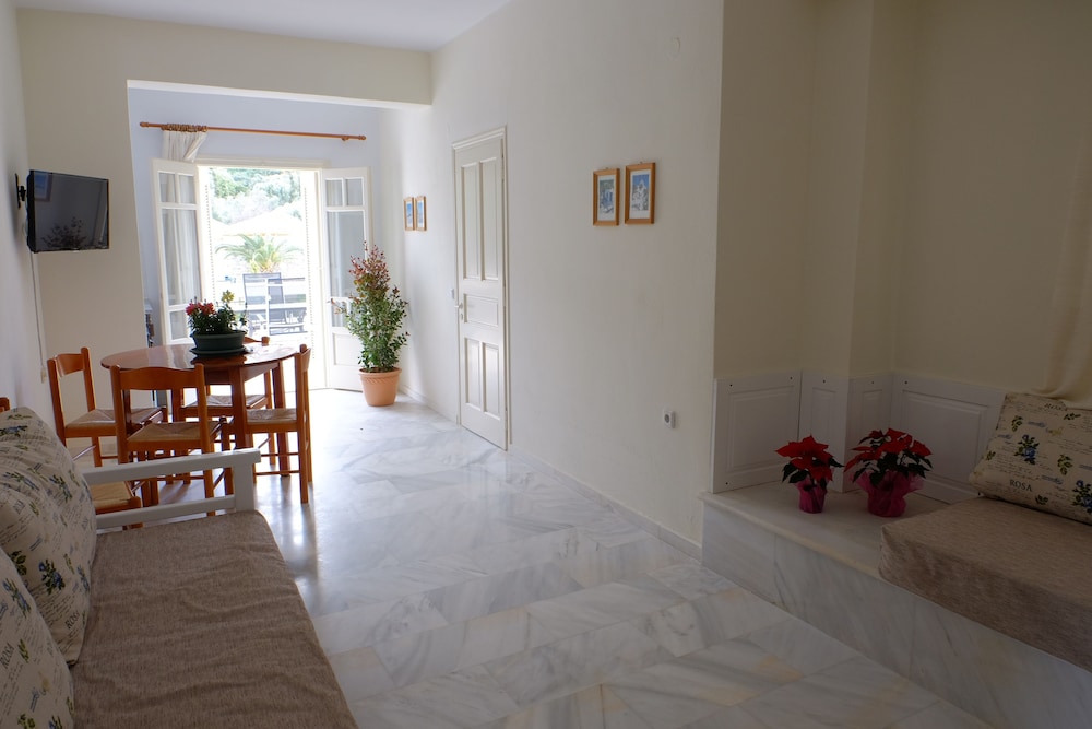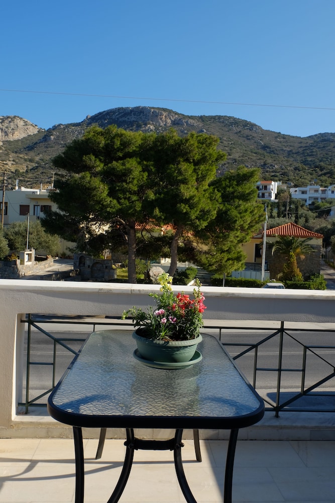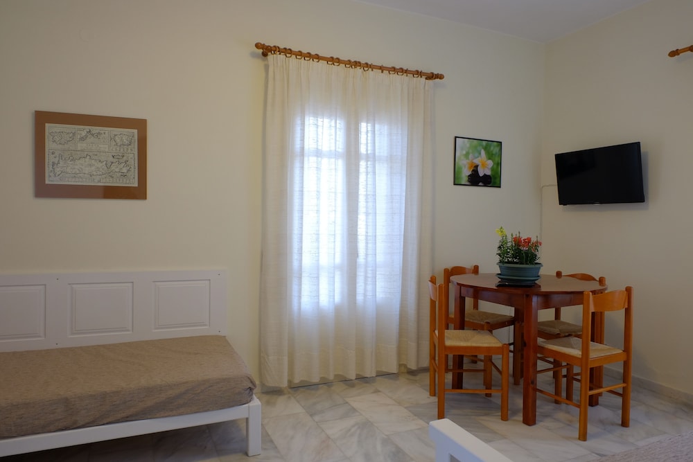 Clean and spacious family-run apartment (we were at n.5); parking along the main road, but we hadn't any problem to find a spot; new and big fridge; wifi repeater in apt, good speed; tavernas and pizza nearby; very kind, willing and helpful host, if you need something just ask, they'll try to help you; I recommend it.
