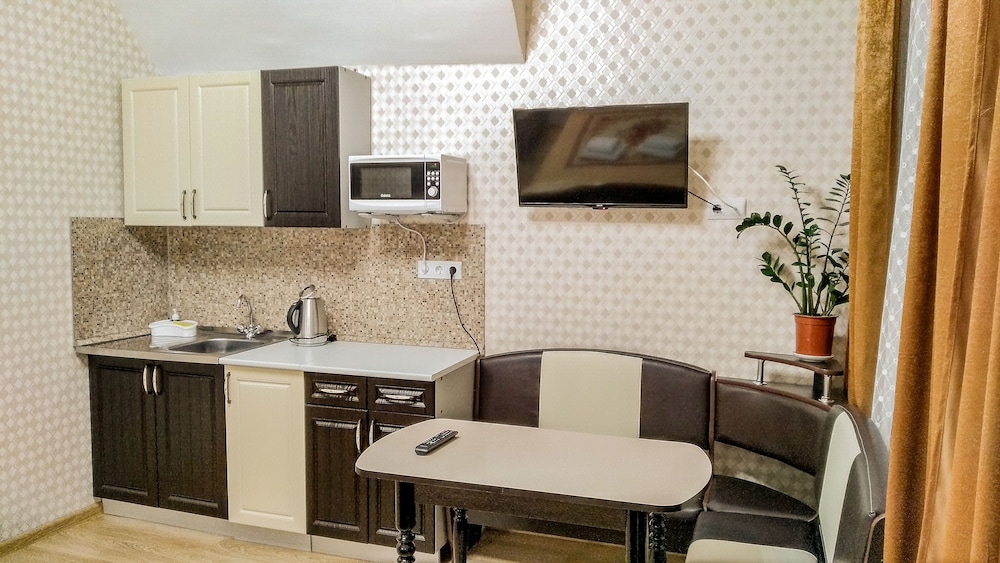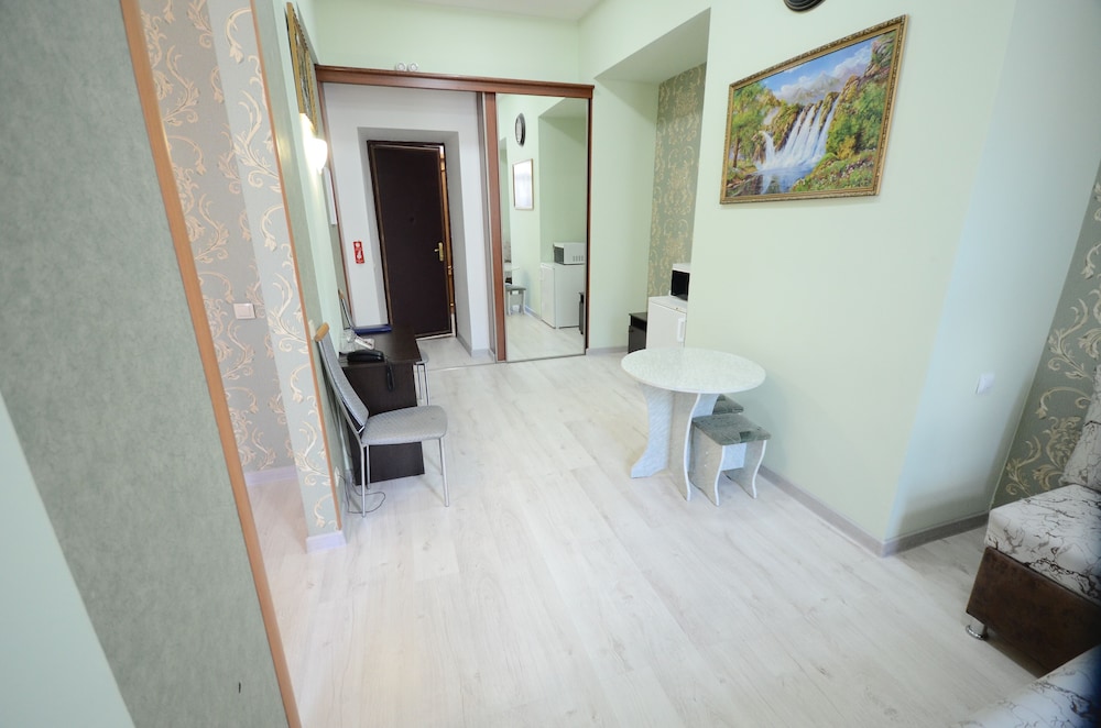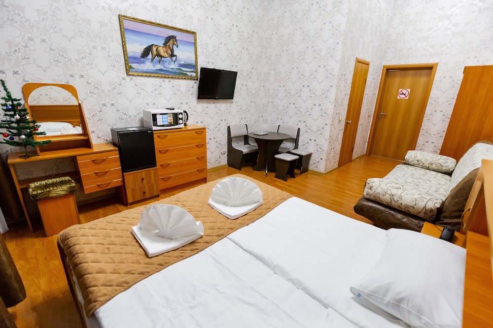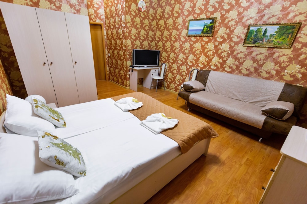 При выборе ориетировались на рейтинг сайта, к сожалению, в этот раз он совершенно не подтвердился. Хотя в целом, нам повезло - номер был не в общем коридоре, а отдельно со входом с лестничной клетки. Похоже, когда-то гостиница и знавала лучшие времена, но сейчас все замызганное и еле выживающее. Оставив вещи утром, мы вернулись только к шести часам, но номер был еще в стадии уборки. Обещанных халатов так и не дождались, устав напоминать. Вся уборка сводится к выбросу корзин с мусором, и то не всегда в туалете это делали. Вообще уберут, только если ключ оставите, но никто об этом не предупреждает в первый день. Полотенца сменили за неделю один раз. Постелье белье, естественно, нет. Особого внимания заслуживает завтрак. Всего три столика на 6 мест, у нас был номер с кухней, поэтому мы не испытывали проблем. Как все остальные ели - не знаю. Но, собственно, и есть было в полном смысле не чего. Завтраком занимается администратор, закрывалась в крохотной подсобке, выносила оттуда или кашу (мы так и не поняли из чего), есть все-равно это было нельзя. Один раз какие-то сырники из полуфабриката, один раз вермишель. Обязательно самый дешевый йогурт длительно хранения и химическая сладость в одноразовой упаковке.