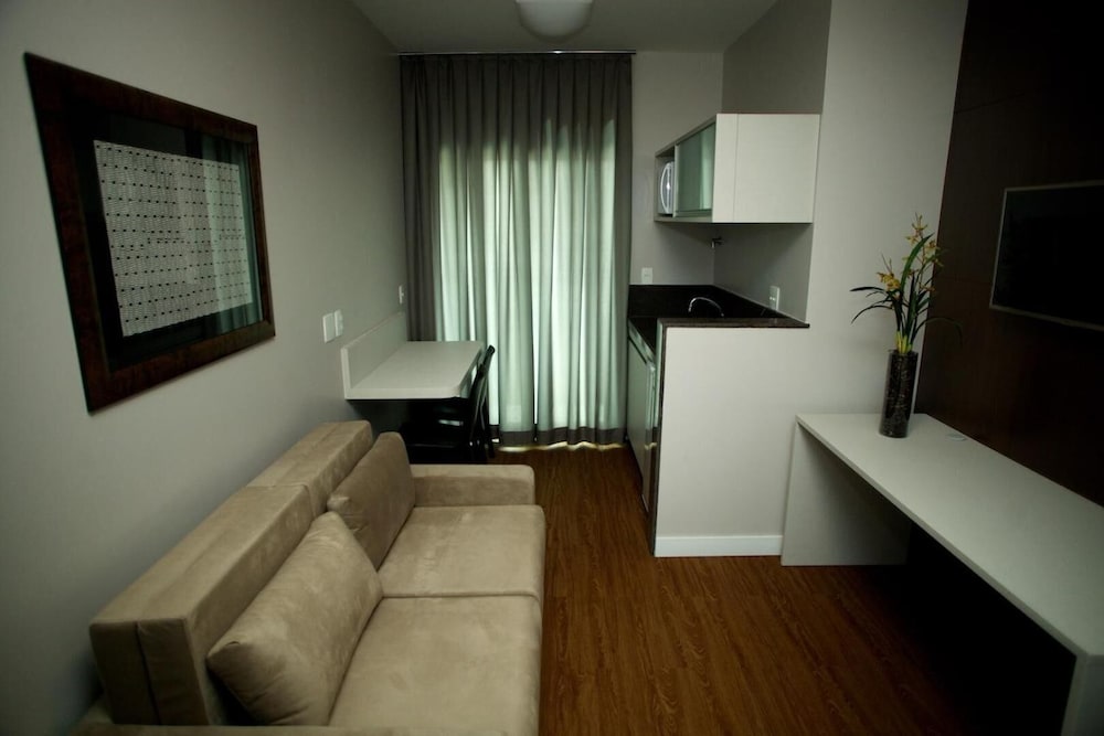 No geral, tive uma estadia muito agradável. As funcionárias da recepção são simpáticas, já os seguranças da noite nem tanto. Ao pedir comida, você precisa descer para buscar, pois não deixam o entregador subir. O apartamento é bem aconchegante e achei a localização boa para o que precisava. Perto do shopping Itaú (de carro). O banheiro é um pouco apertado, mas nada que incomode.