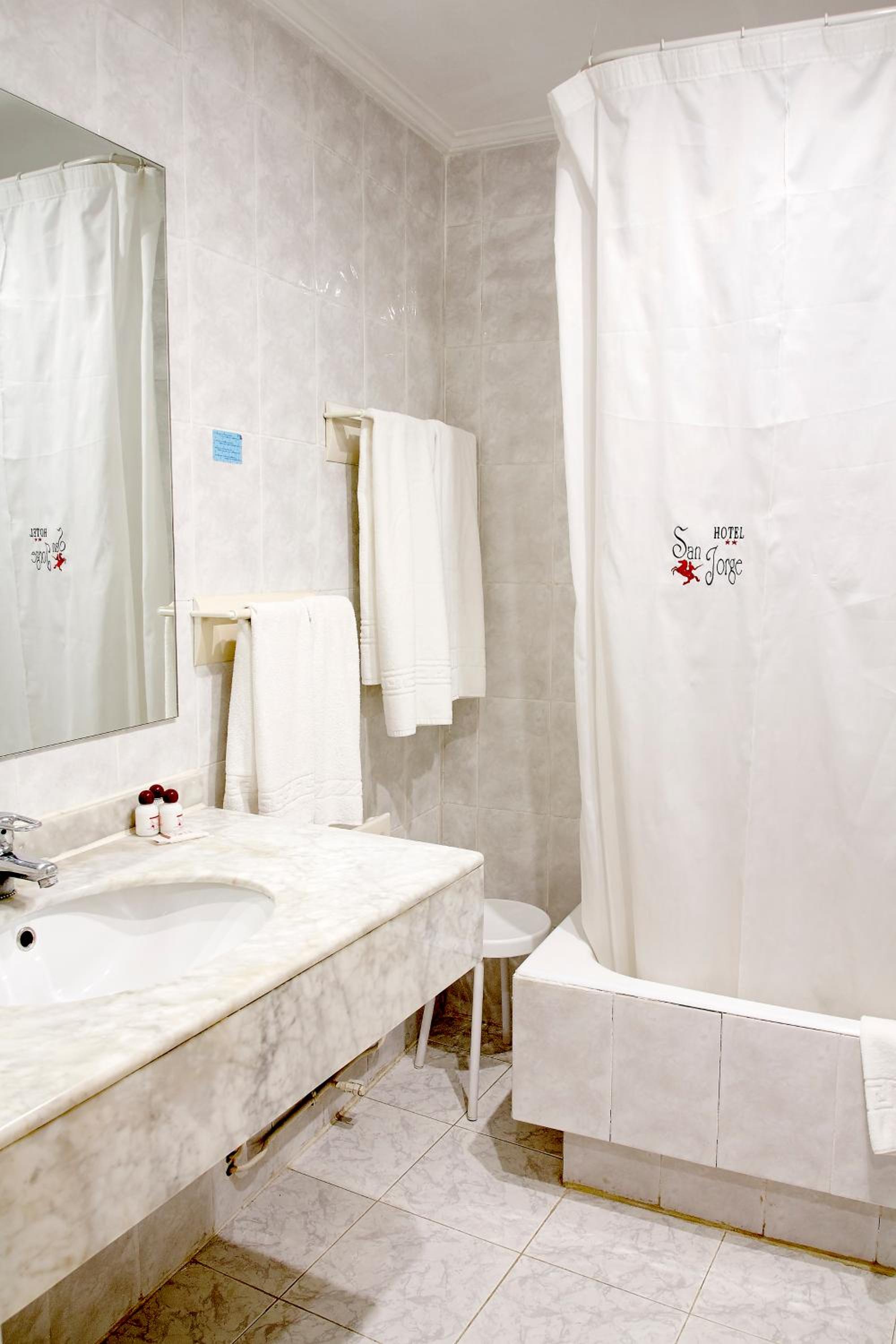 Each room at San Jorge is thoughtfully designed with amenities like free Wi-Fi, flat-screen TVs, and central heating. The cozy ambiance with carpeted floors ensures a relaxing stay, complemented by private bathrooms equipped with a hairdryer.