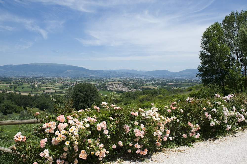 Il posto è spettacolare, situato su una collina dove si possono ammirare i bogrhi di Bevagna, Spello e Folingo ed anche Assisi.