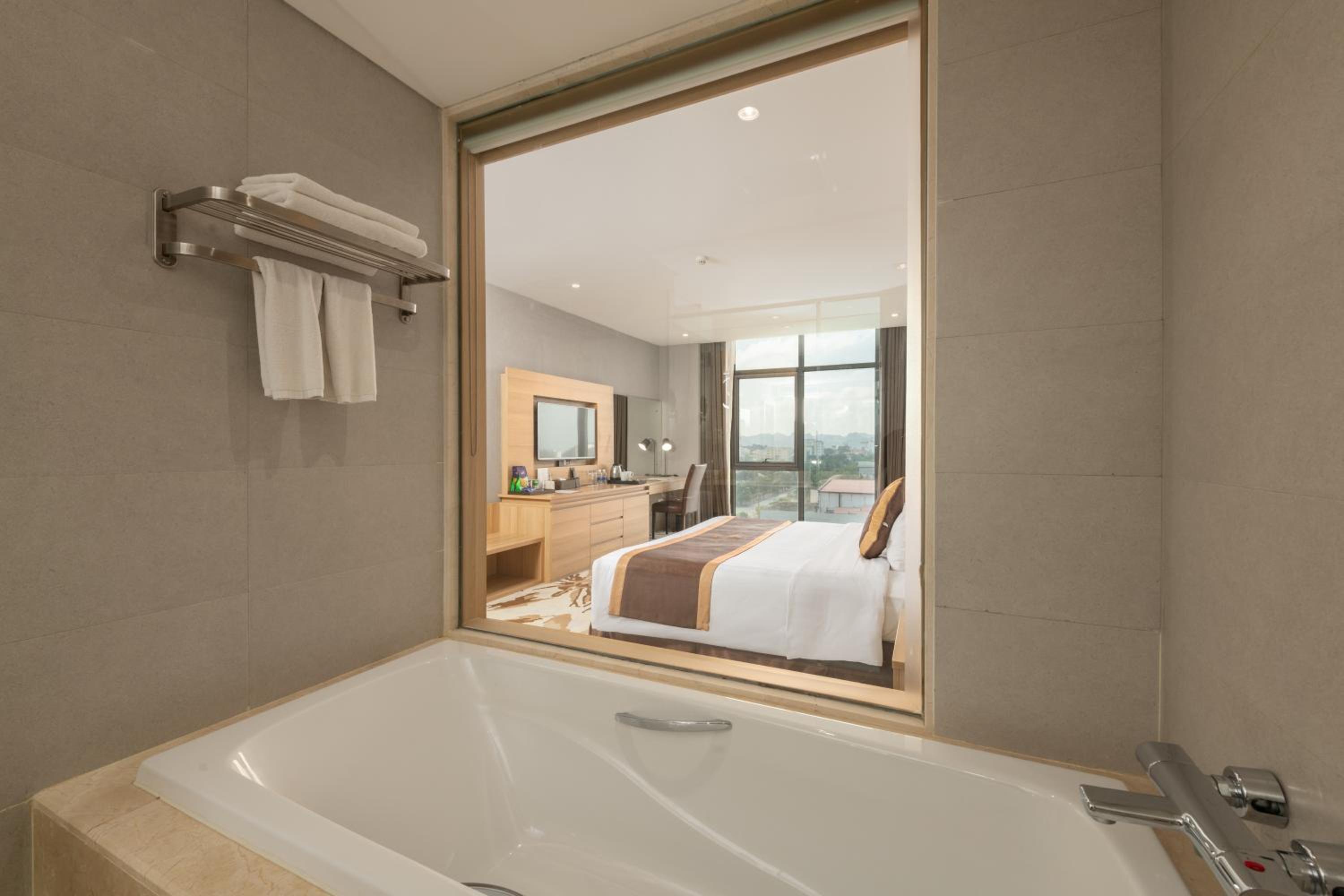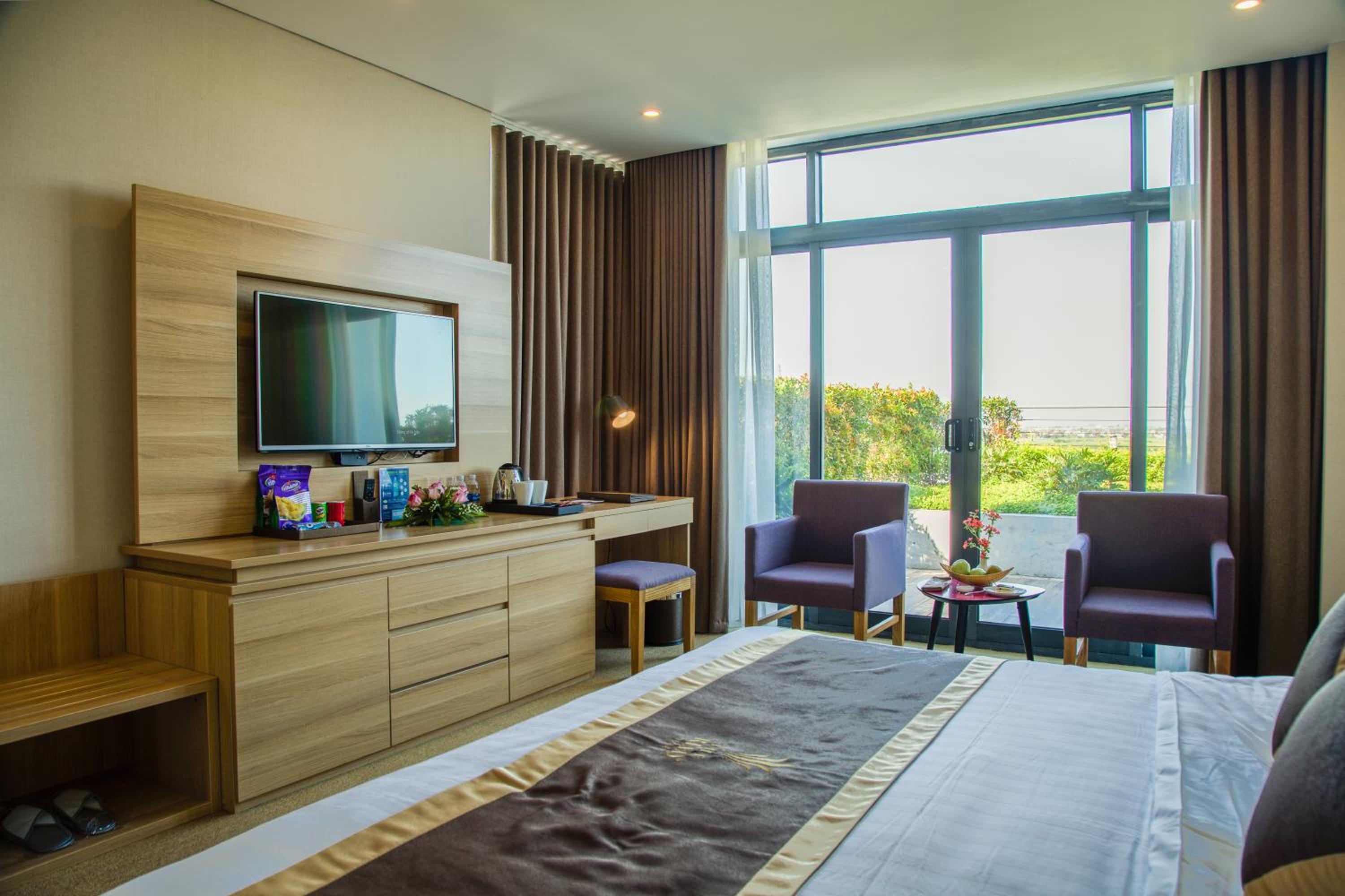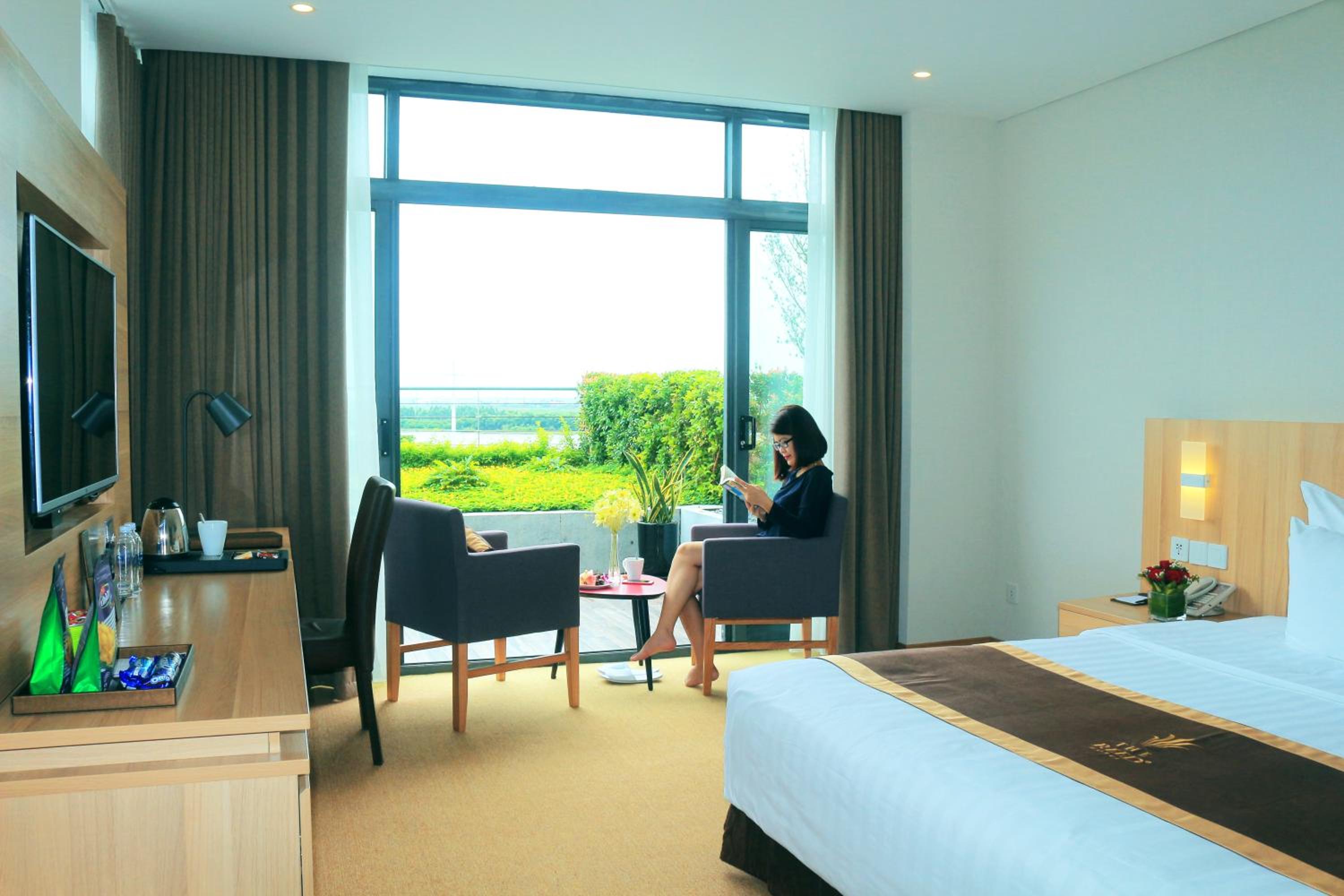 Experience comfort and convenience at The Reed Hotel in Ninh Binh. Indulge in our air-conditioned rooms with modern amenities and free WiFi. Relax in the cozy seating area and enjoy stunning views of the river or city from select units. Pamper yourself with complimentary bath robes, slippers, and toiletries for a truly relaxing stay.