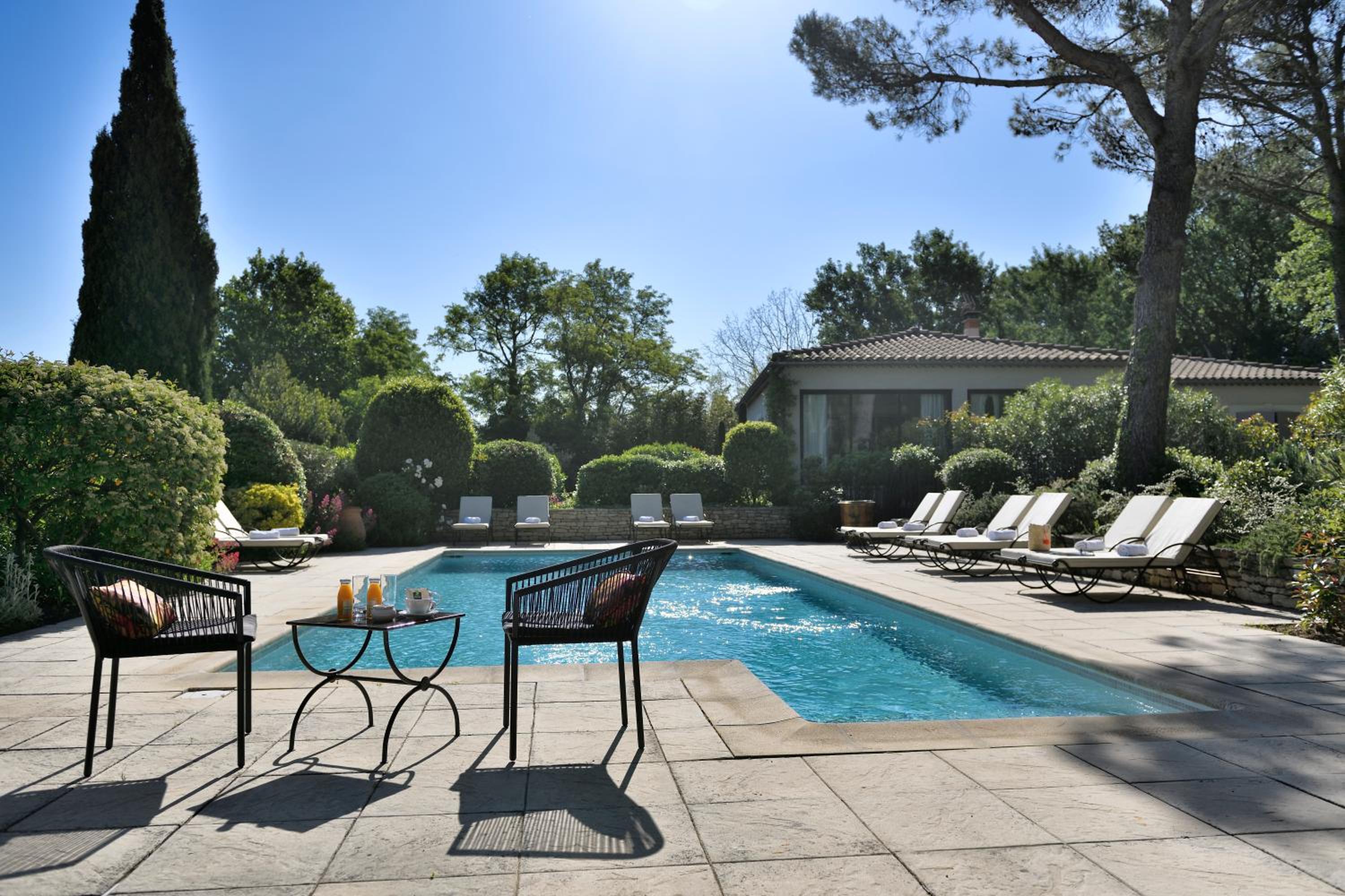 Lovely property in large shady gardens with a small impeccably clean pool area. The owners are extremely welcoming and the spacious rooms have absolutely everything you need. We especially enjoyed our own private terrace with beautiful garden views. Sitting out there with a glass of wine in the evenings, or enjoying the generous breakfast delivered to your room in the mornings were definitely highlights.