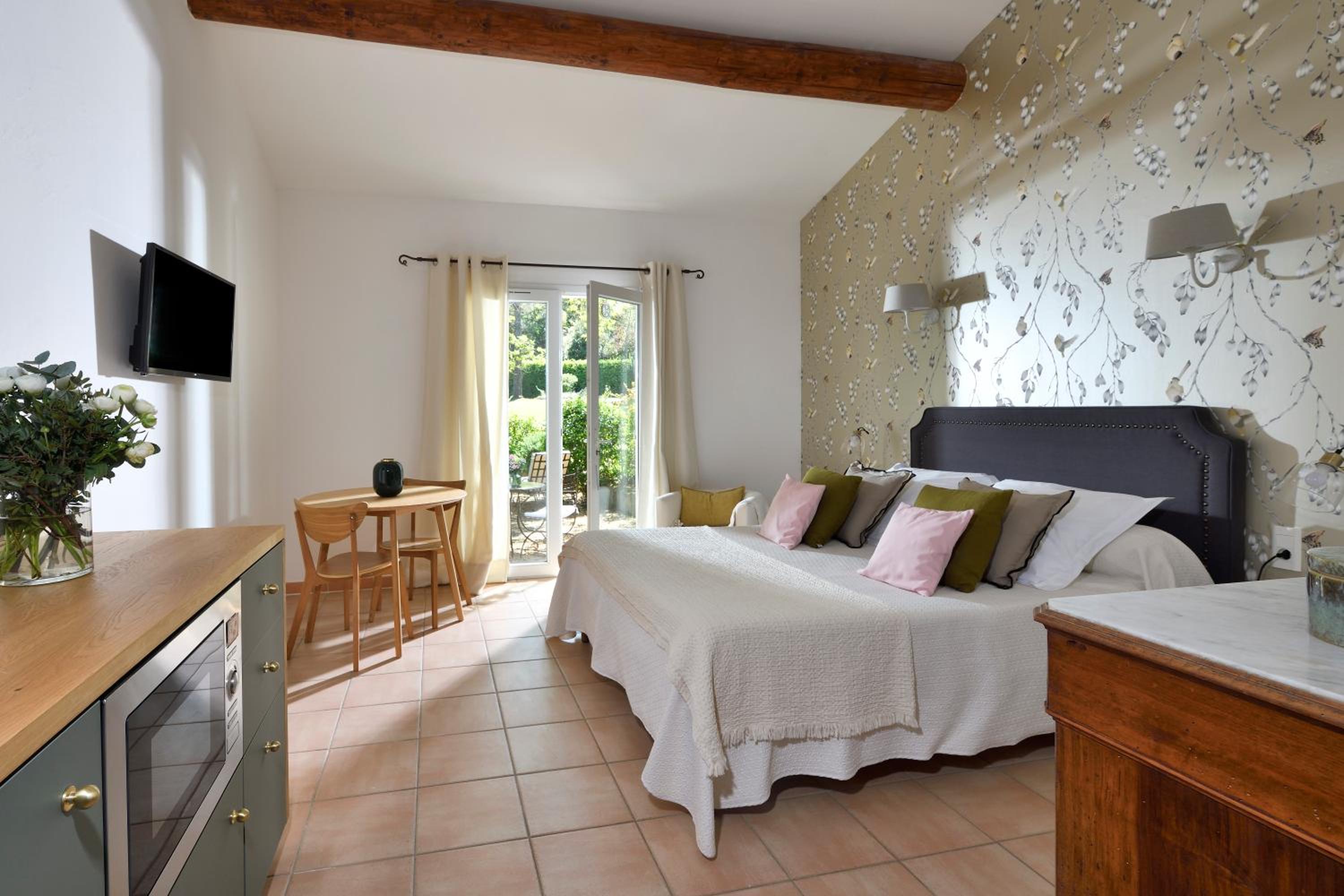 Charming Accommodations: Individually decorated rooms with garden views, private entrances, and modern amenities like free Wi-Fi and flat-screen TVs.