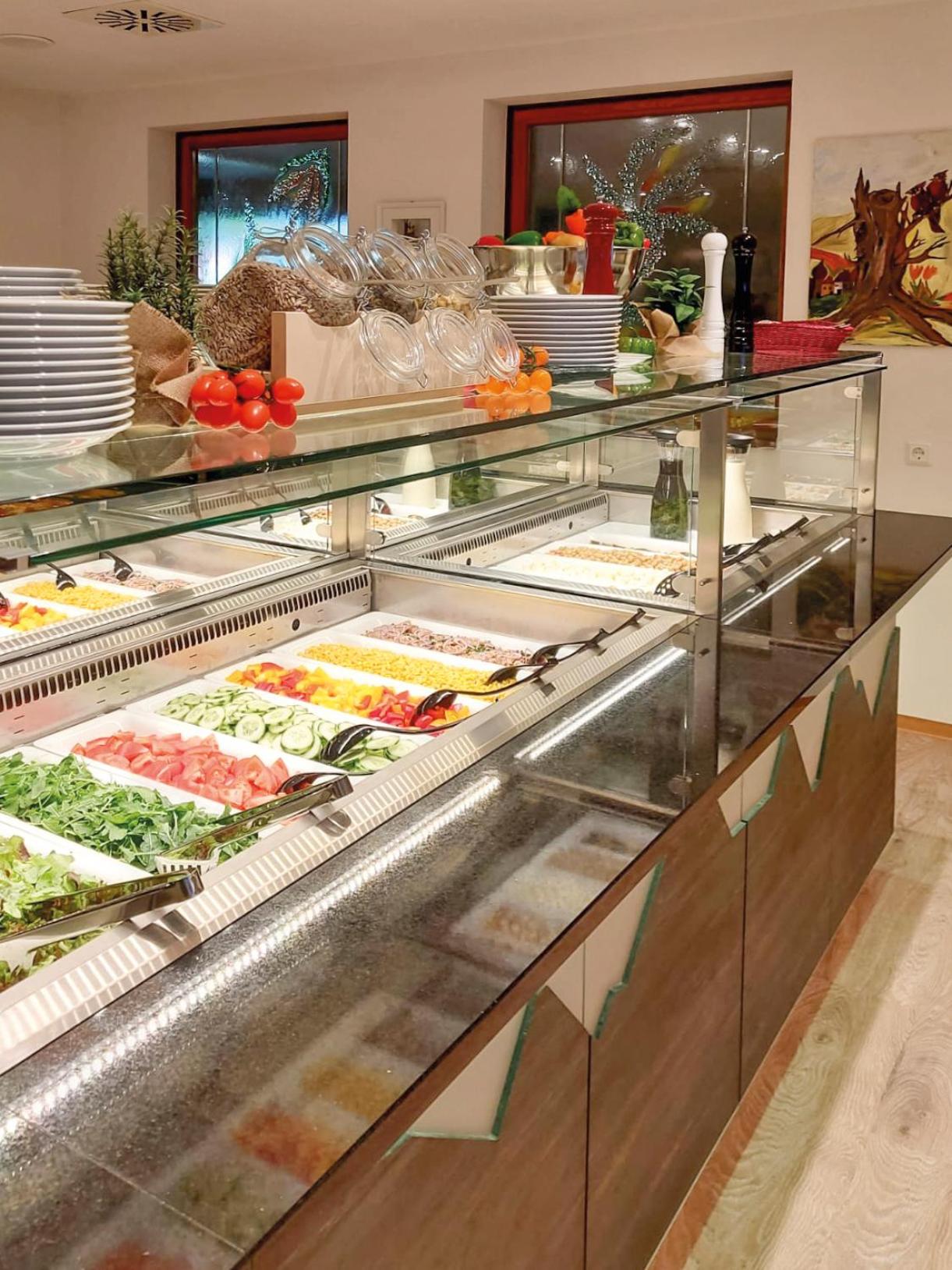 Das Frühstücks- und Abendbuffet der Halbpension ließ keine Wünsche offen! Sehr schöne Lage in Oberhof; innen recht gemütlich renoviert im 90er-Jahre-Stil; absolut sauber!