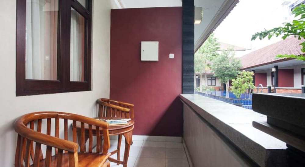 Tucked away from the bustle yet walking distance to good warungs, money change, souvenir shops n western food.. big clean rooms.. nice little balcony.. very clean pool n surroundings... great value for money.. would recommend..