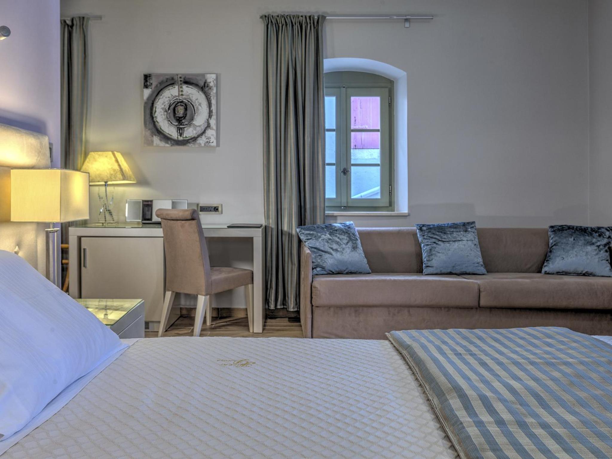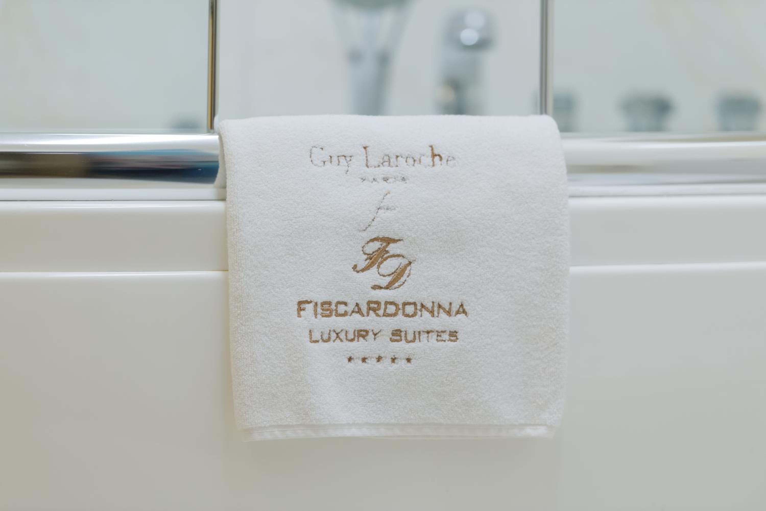 Indulge in air-conditioned rooms with premium amenities, a flat-screen TV, and a private bathroom at Fiscardonna Luxury Suites.