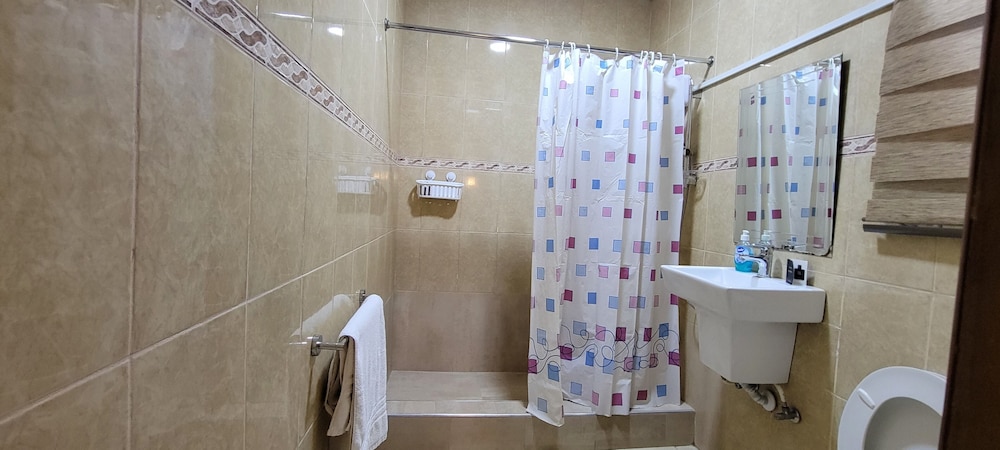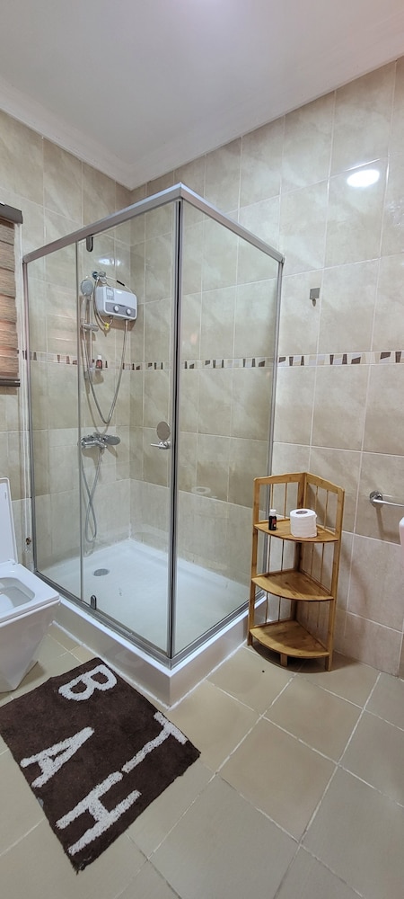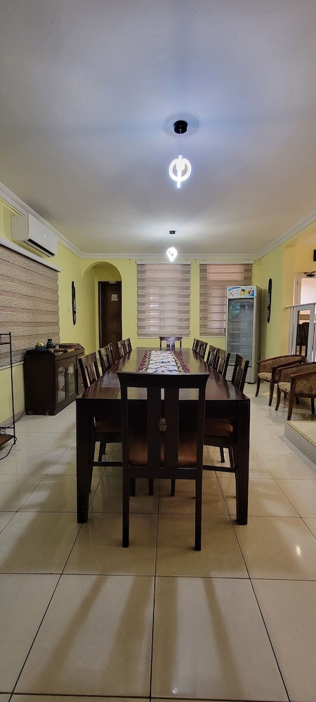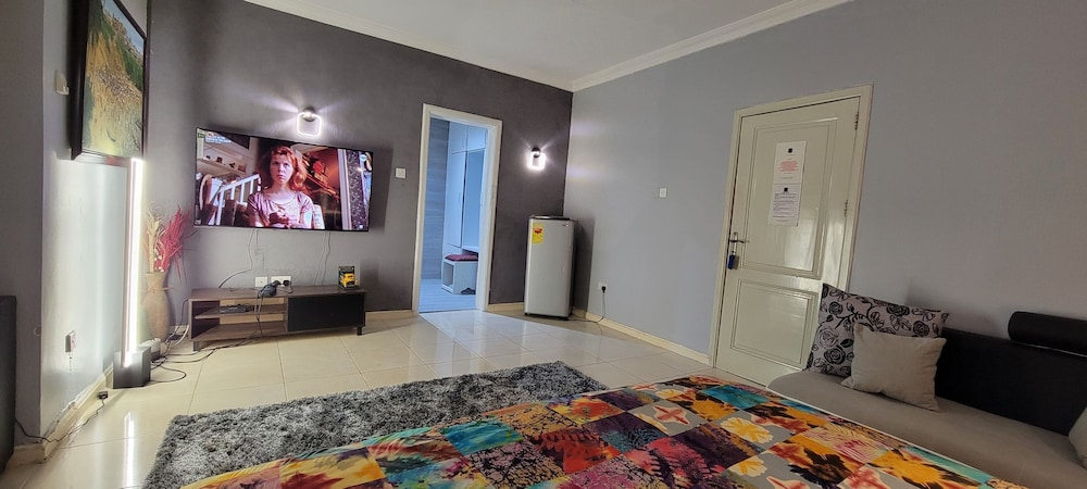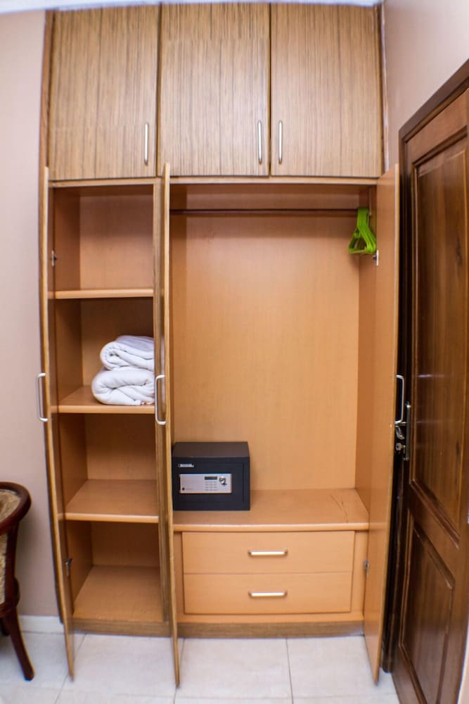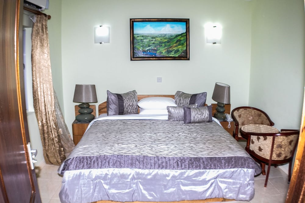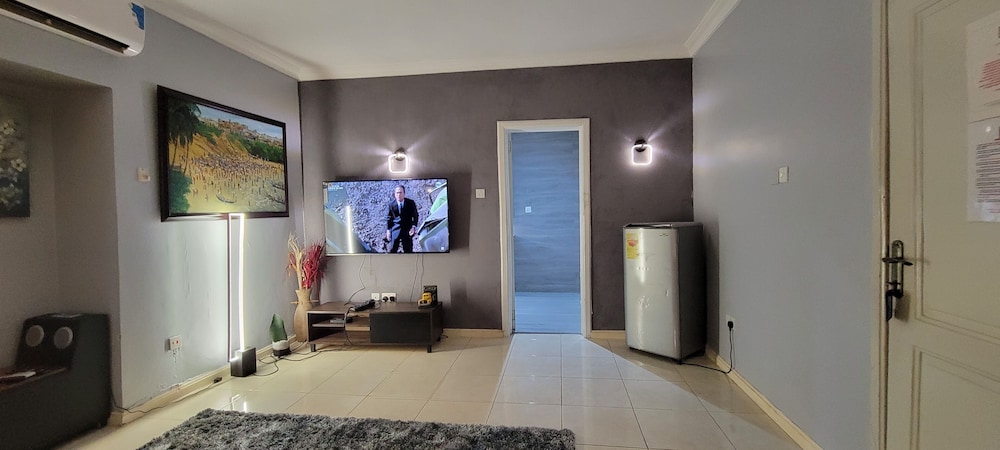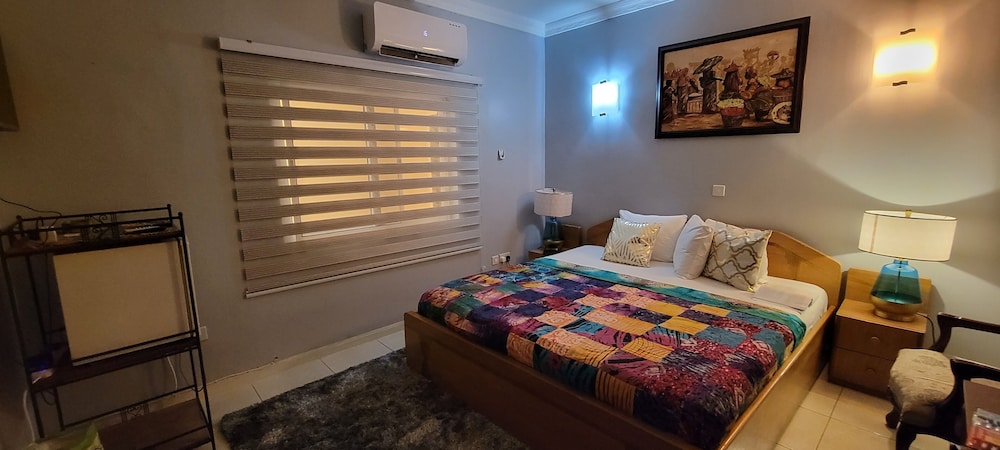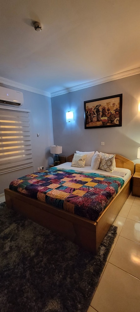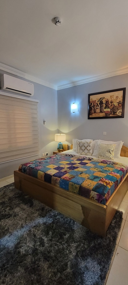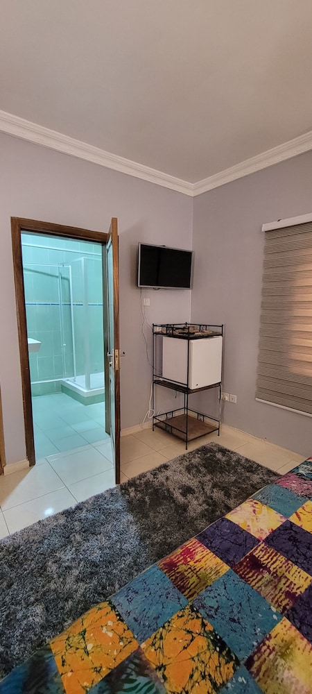 Stayed with my wife and 3 kids in a family room. Hotel is small but well furnished, great AC to keep cool, and clean bathrooms. Generally better than the impression the photos give! Unfortunately broken shower (electrical fault) and broken wifi while we were there, but this is generally unsurprising for us in Ghana. Staff were really kind to my youngest son who had bad earache overnight, and were happy to head out and get us medicine and water bottles. They arranged a reasonable airport transfer van which was on-time and reliable. Overall good value and we had a great night's sleep in comfy beds. Breakfast options a little limited, but there are pancake, cupcake, yoghurt bar places less than a hundred yards down the road, as well as an Italian and Turkish restaurants.