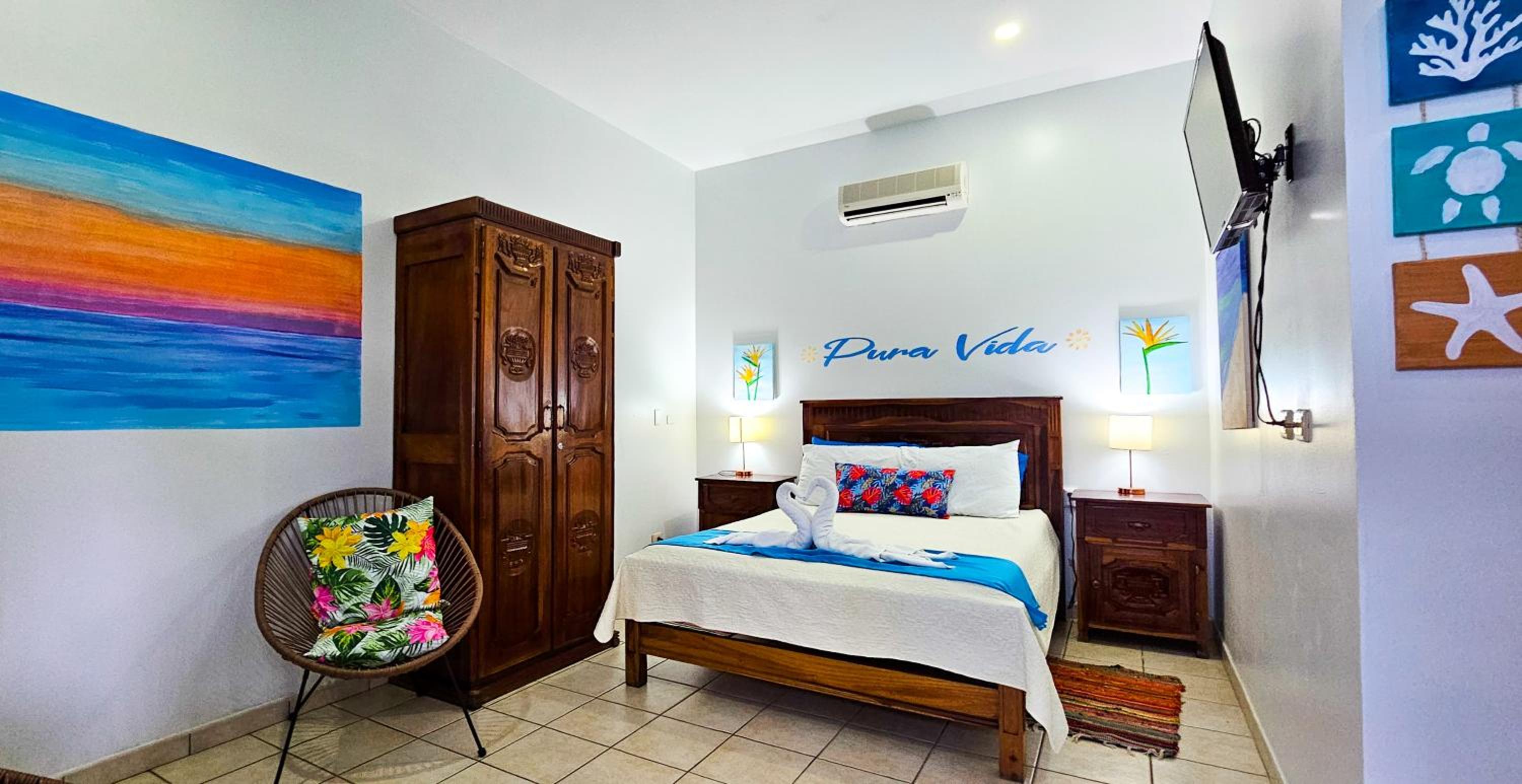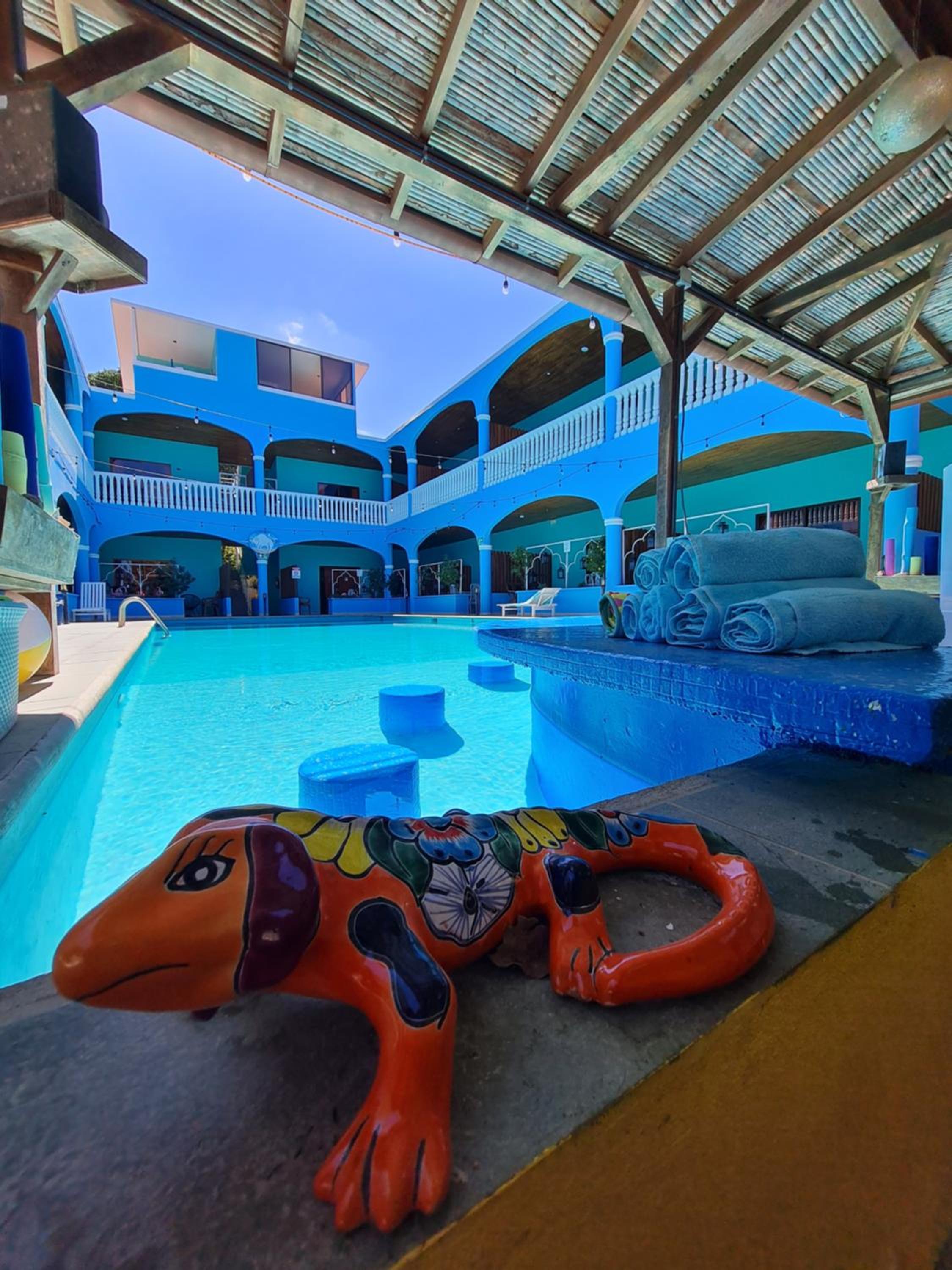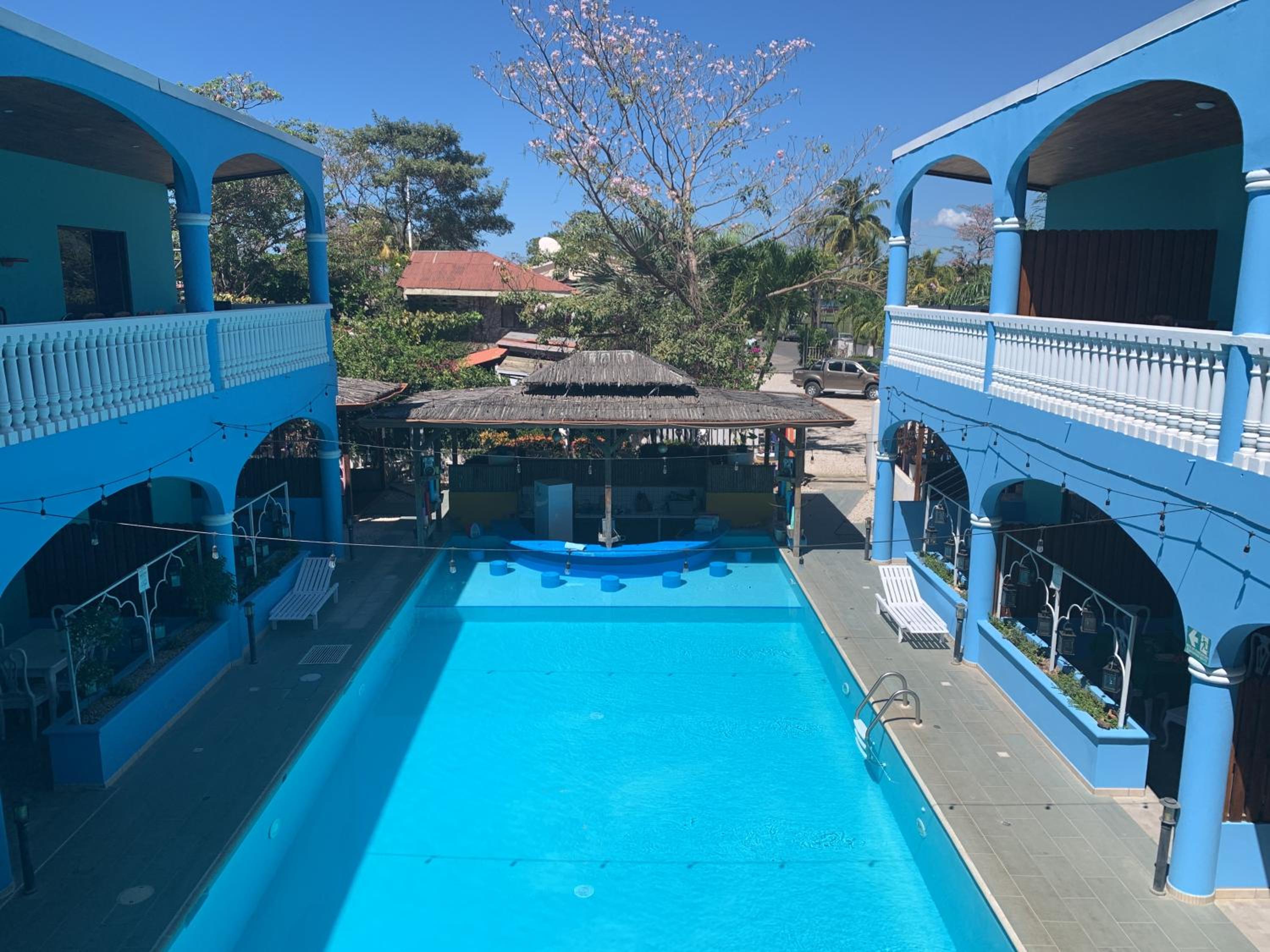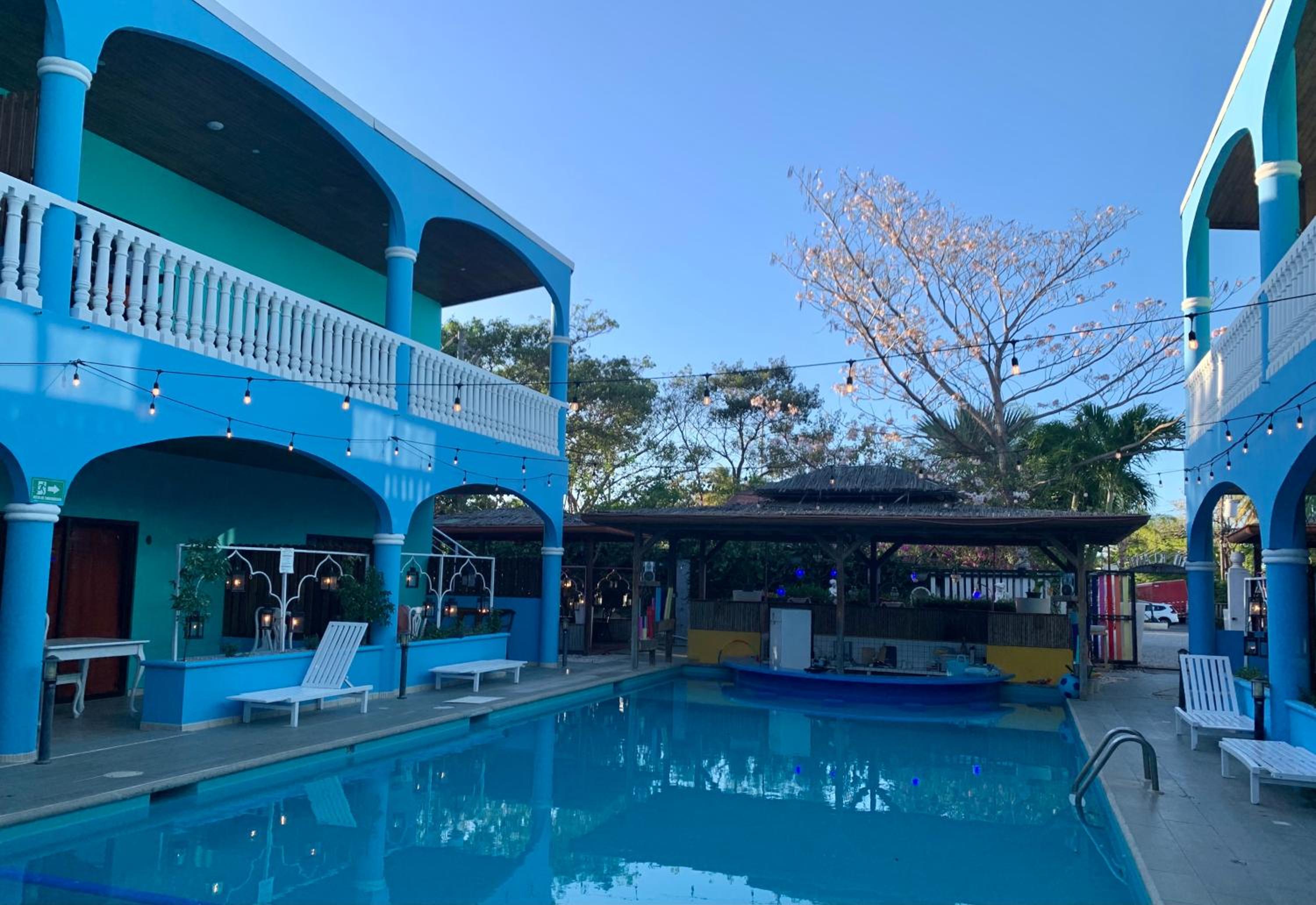 Friendly and helpful staff (Accolades and thanks to Felix). Breakfast provided. Hot water and excellent A/C. Gated parking. Central to most of Playa Del Coco, so easy walking distance to boardwalk and main strip. Absolutely gorgeous swimming pool.