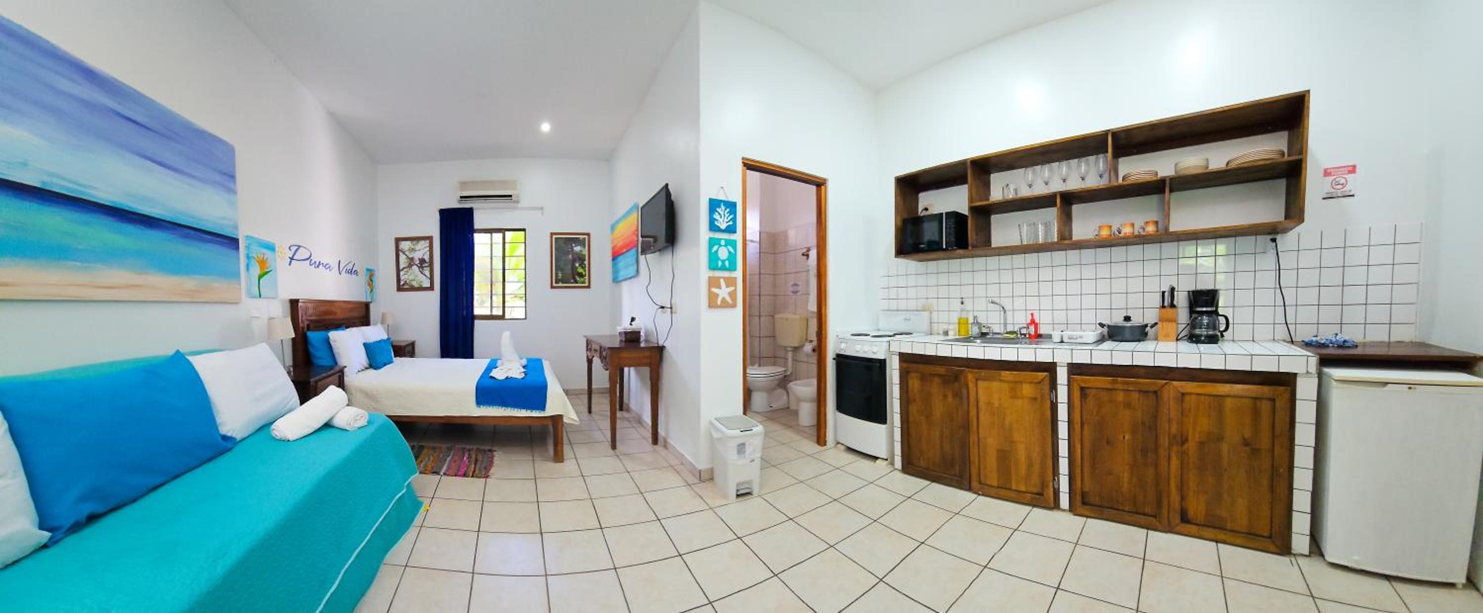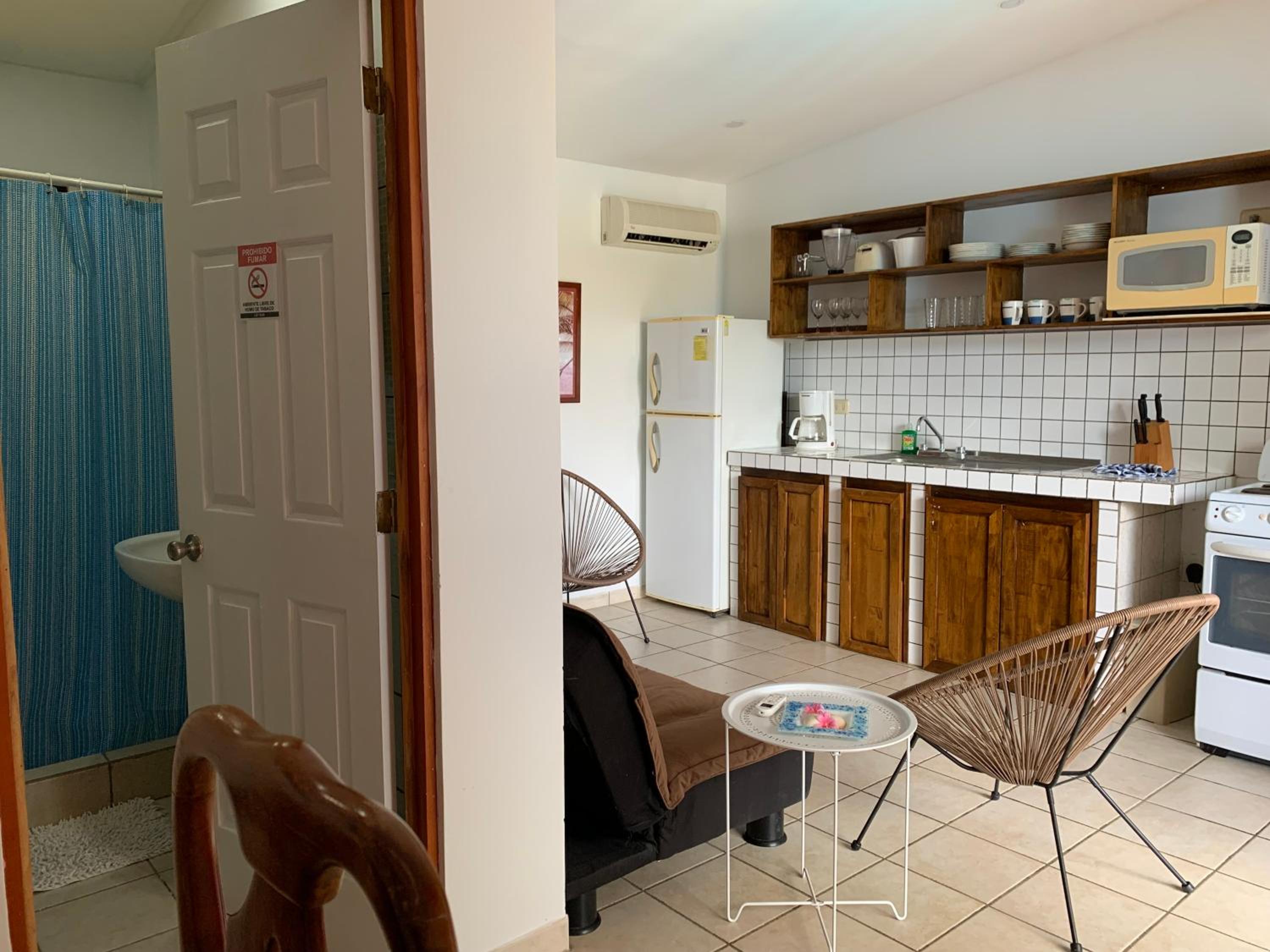 The staff at this hotel were very friendly and welcoming. They lent us umbrellas for us to use while we stayed there because of the weather conditions. They gave us information on the best places to eat and made us feel at home. While the hotel is not a luxury resort, I was pleasantly surprised how big the hotel room was. It had a separate kitchen and couch and the outside patio was very large with furniture and a hammock. Will definitely stay again if we make it back to Costa Rica.